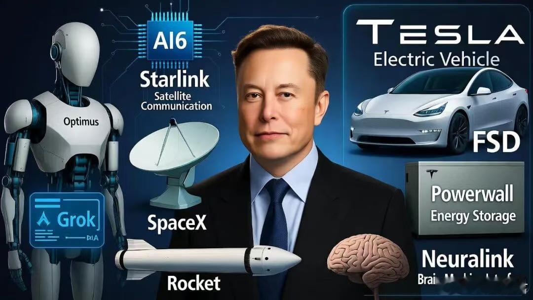 最后,虽然中美的技术路线有巨大的差别,但未来四大领域之间的关联性,我们可以借鉴一下中国人民的老朋友,“样样都占”的埃隆马斯克。