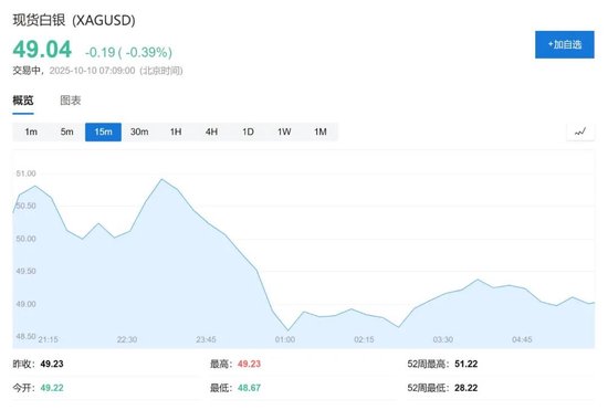 截至发稿,现货黄金价格报3976.38美元/盎司,现货白银价格报49.04美元/盎司。COMEX黄金期货收跌1.95%,报3991.1美元/盎司;COMEX白银期货收跌2.73%,报47.655美元/盎司。