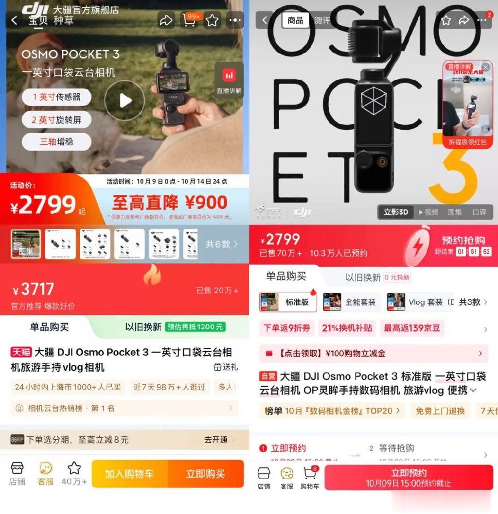 日前,大疆在官网及多个电商平台官方旗舰店挂出促销信息,多款产品价格直降数百至上千元,涉及云台相机、运动相机、手持稳定器等。