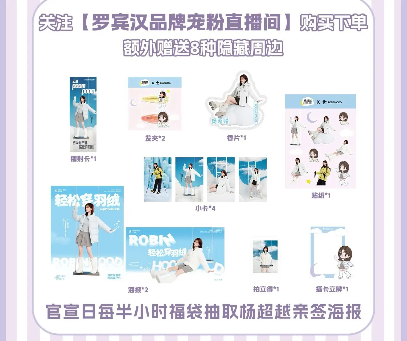 10月10日9:00起,🫘【罗宾汉品牌宠粉直播间】每隔半小时可抽杨超越亲签海报,十点准时官宣,下单可获得隐藏周边!
