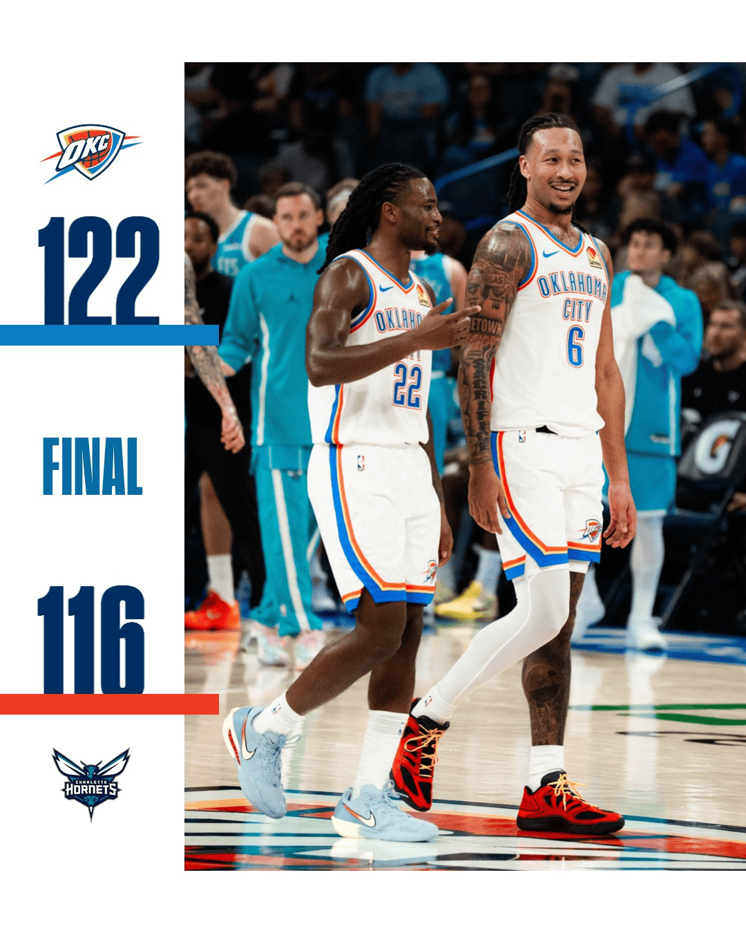 雷霆官方晒照发文庆祝:俄克拉荷马在季前赛取得胜利