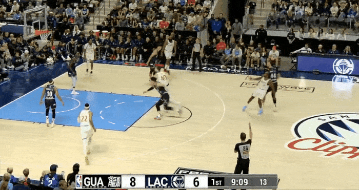 虎扑10月10日讯NBA季前赛,快船对阵广州的比赛正在进行中