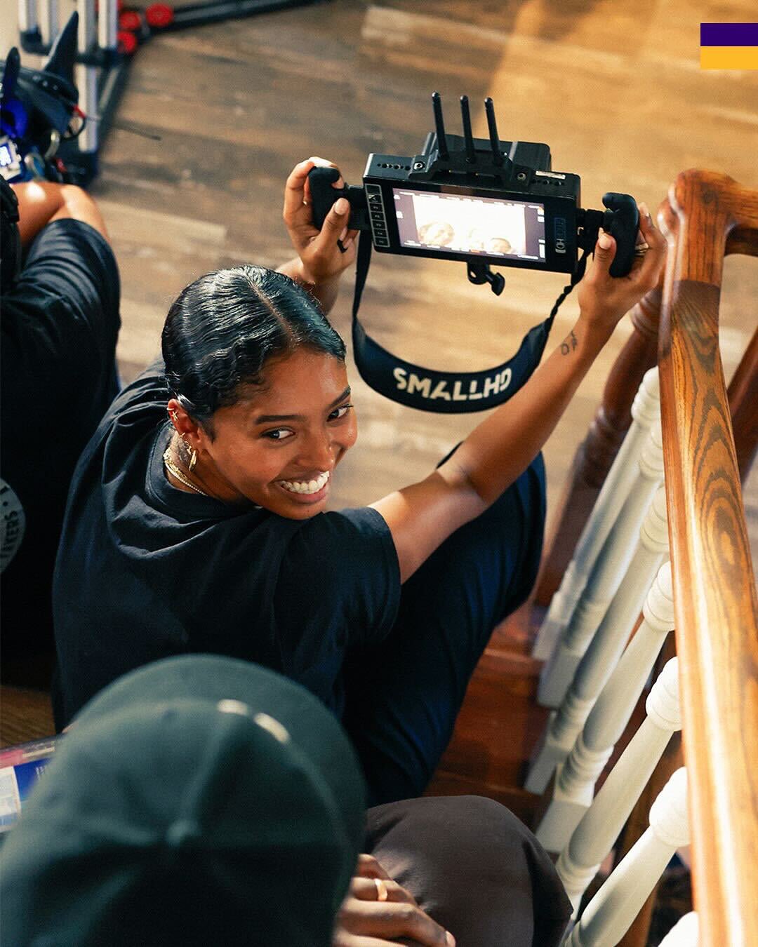 虎扑10月10日讯今日,湖人官方在社媒发布了一组娜塔莉亚-布莱恩特在拍摄湖人电影时的照片。