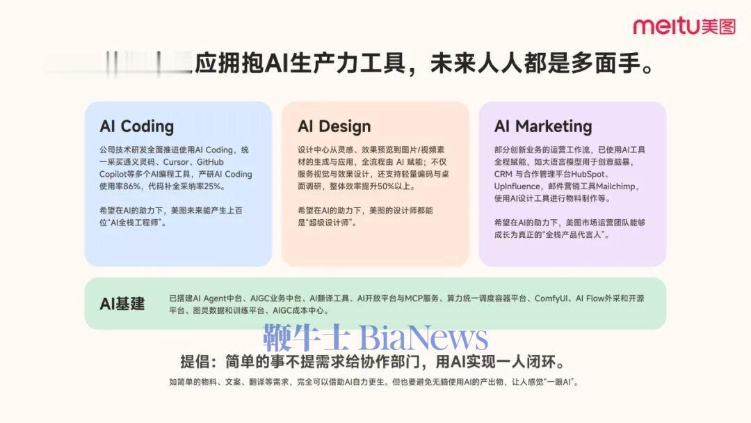 我认为,在AI时代,美图全员都应该积极拥抱AI生产力工具,迈向“人人都是多面手”的未来,甚至要朝着“一个人就是一支团队”的方向努力。