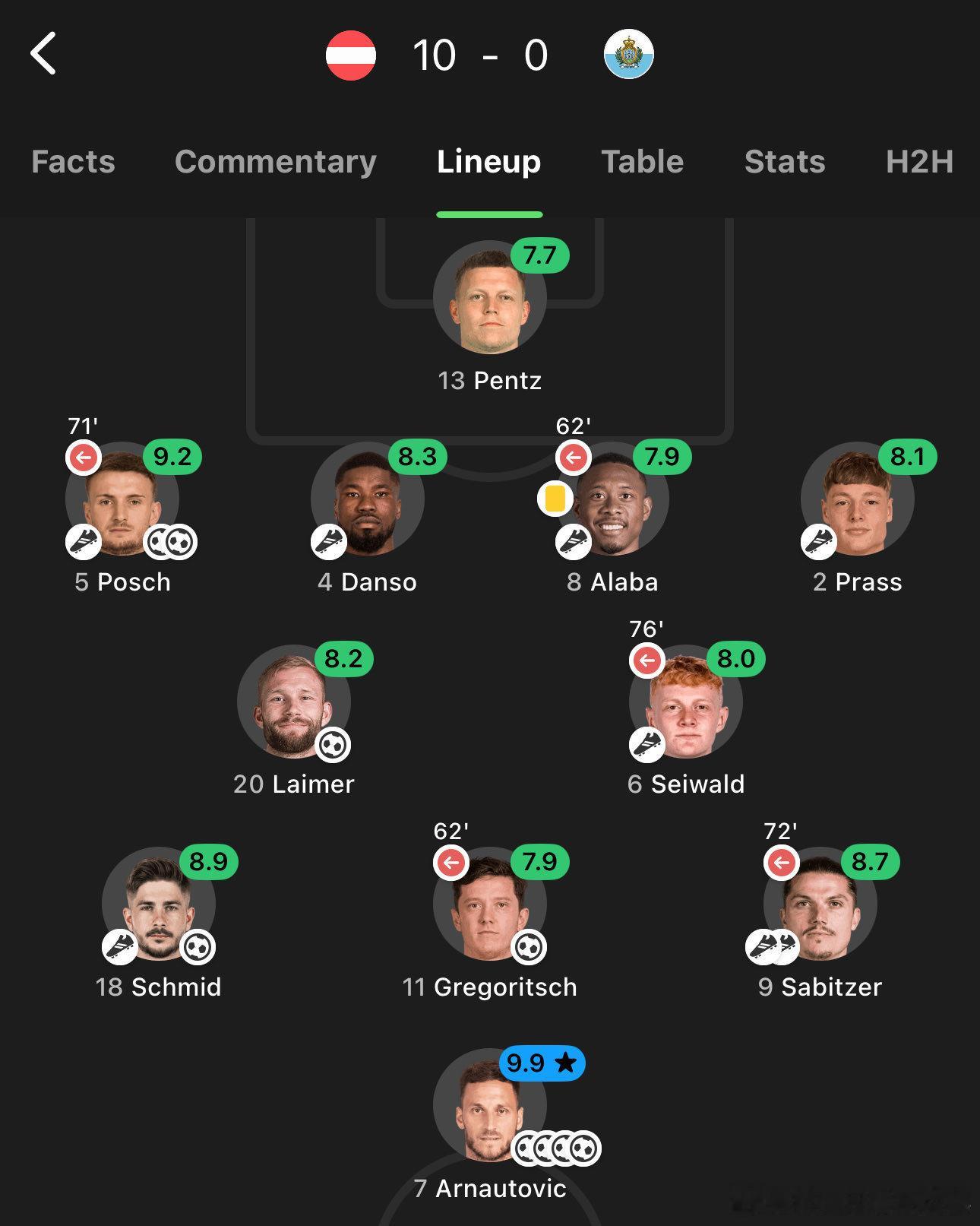 【都不白来】奥地利首发对阵圣马力诺的每位场上球员(除门将)都有进球或助攻🤯奥地利世预赛10球狂胜圣马力诺