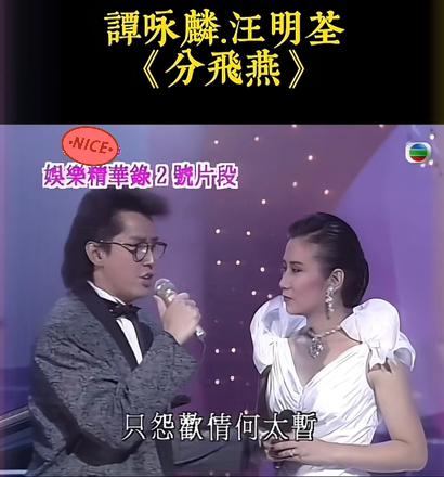 极为罕见的谭咏麟和汪明荃的同台献唱! 在1987年无线电视台台庆的时候,当时谭咏麟也没有叫校长,汪明荃也没有叫大姐大! 他们当时正合唱一首粤剧首本名曲《纷飞燕》谭咏麟的发型着装十分具有当时的时代感,反观阿姐汪明荃在当时就很会穿衣服了,一身白色的晚礼服,加上发型妆容,就算是放到现在也都没有违和感! 不过在唱歌方面,还是谭咏麟发挥的比较好,啊姐汪明荃有两句歌词唱破音了一点,不过啊姐的素质非常高很快就调整了状态,最终为大家留下了经典一幕! 时光荏苒,转眼将40年过去了,谭校长现在依旧活跃于舞台和足球赛场,阿姐汪明荃则已经退休在家! 不知道他们还能再合作一曲吗?