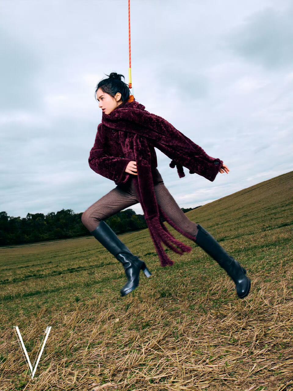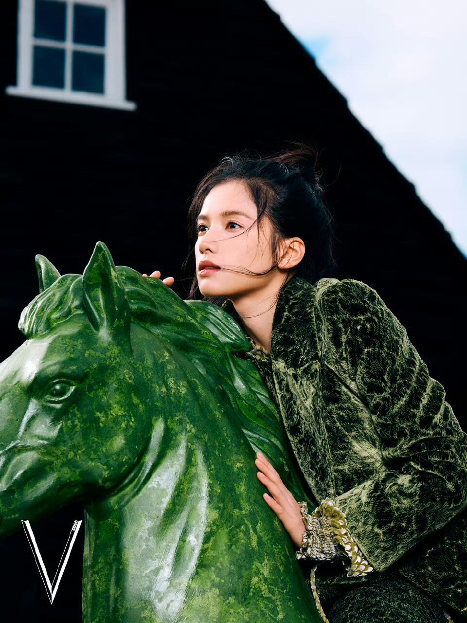 张婧仪登V中文版银十封面,眉眼间尽显大花气场,英气与柔美交融,侠女风范跃然眼前。小花之龄蕴大花风骨,实属难得;大衣风衣加身,更添飒爽风姿。