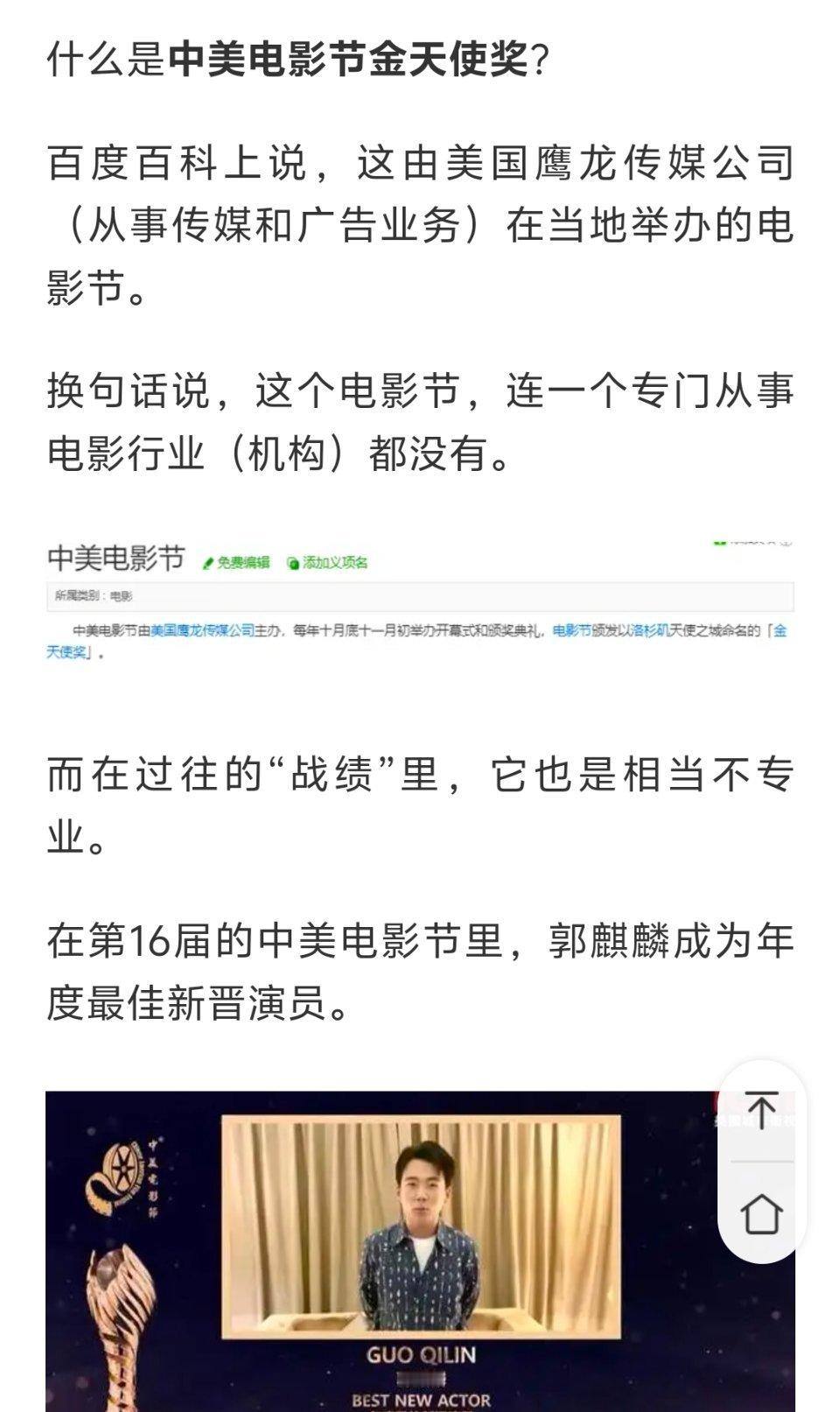 这种野鸡奖入围也要营销?能不能尊重一下观众智商,有点羞耻心呢?所谓金天使就是著名野鸡奖中美电影节设立的,美国的一个不知名娱乐公司举办的,经常烂片公关获奖。正常人遇到射雕这种烂片都是不动声色埋起来,怎么好意思天天营销的?