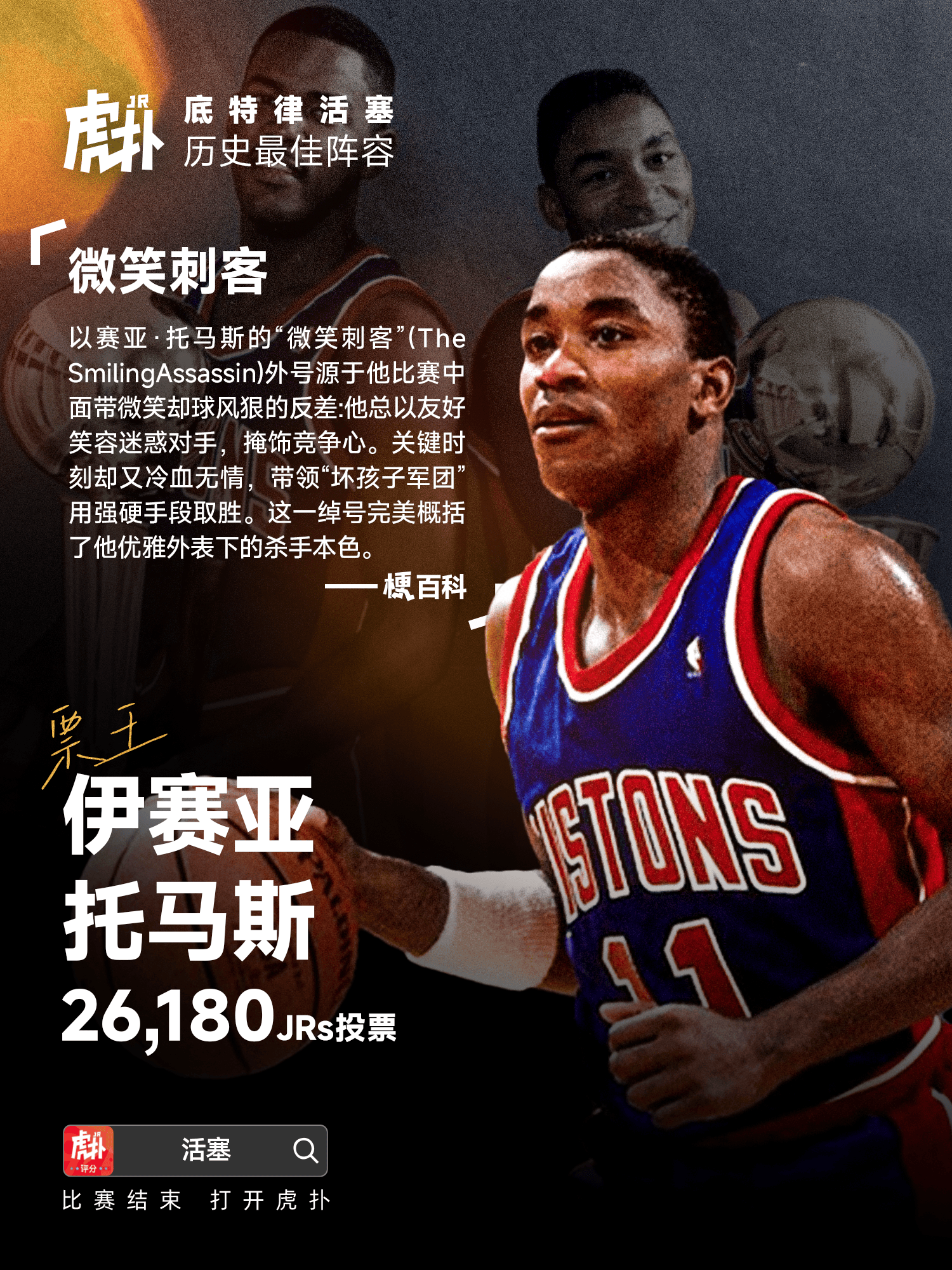 JRs共同评选出的活塞队史最佳为伊塞亚-托马斯,这与你心目中的最佳球员是否一致呢?