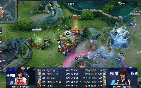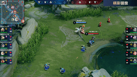 四宝闪开开到甄姬但DRG无人跟伤害,曹操砍入人群,句号阿古朵拿到双杀