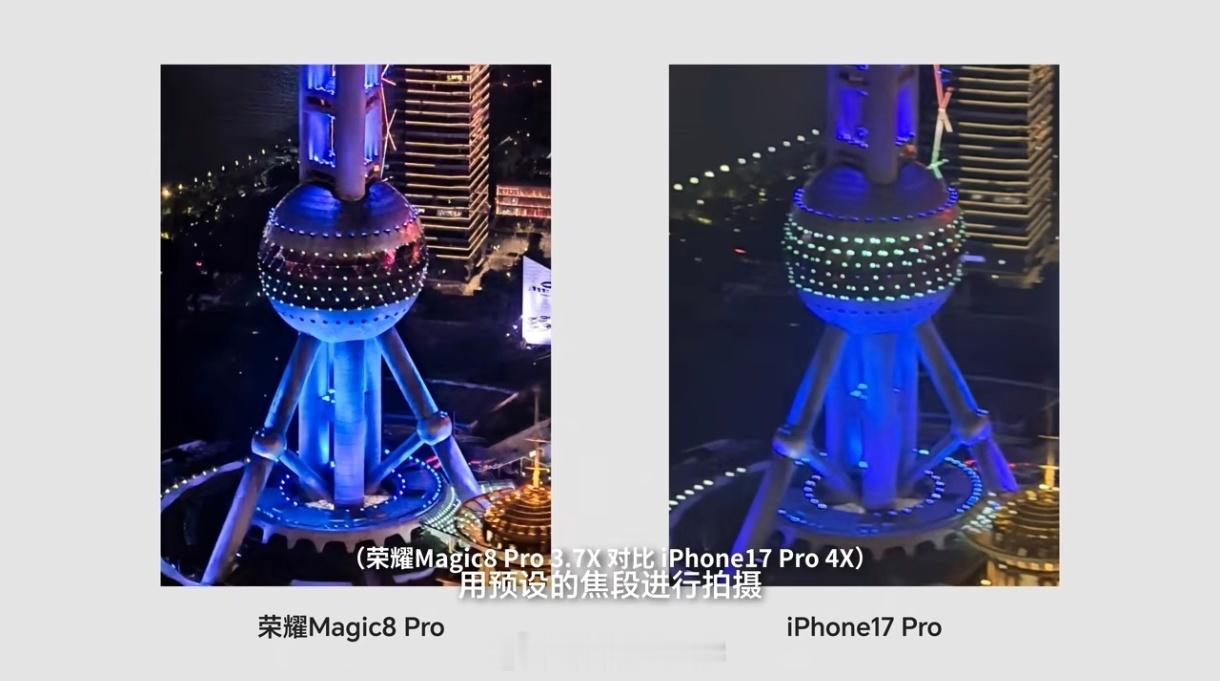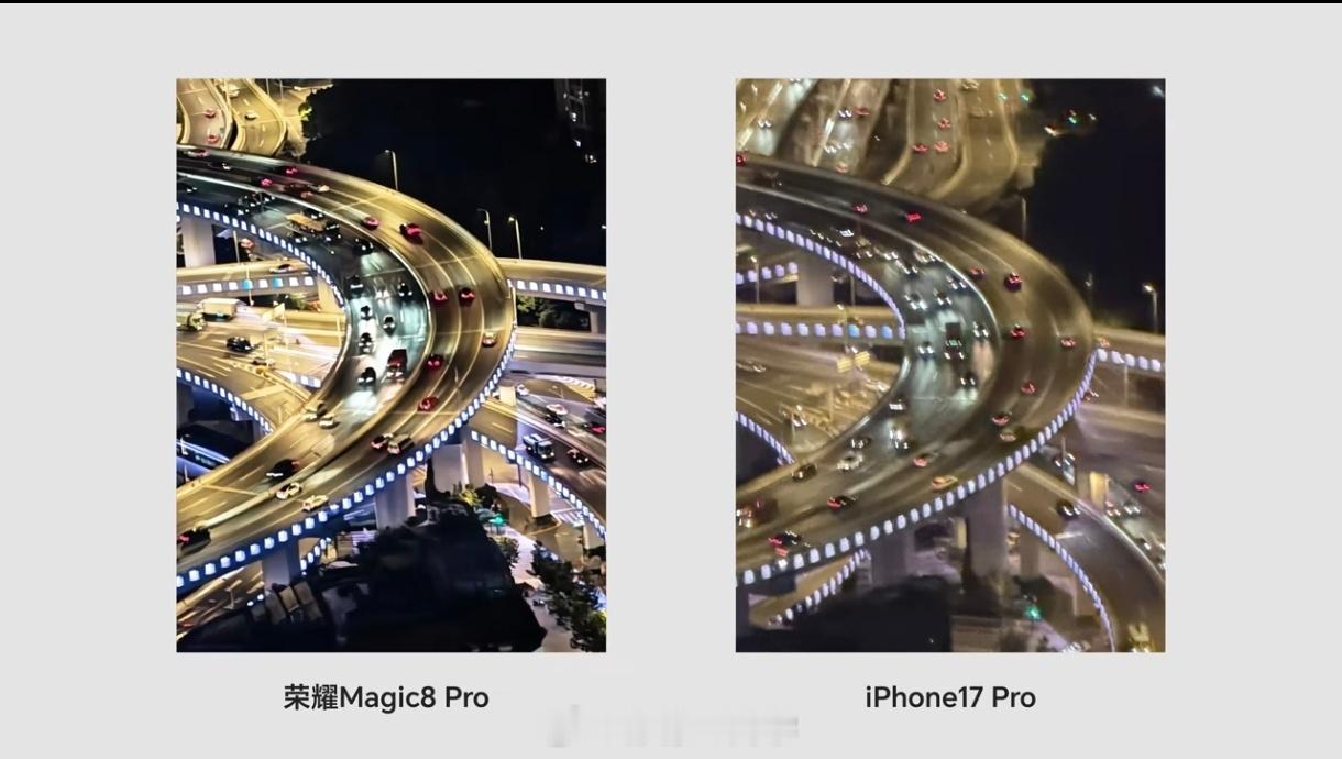 荣耀Magic8 Pro到底是不是“超夜神”,其实实测就能看出来,和iPhone17 Pro相比,压高光能力更强,并且暗部细节也保留完整荣耀Magic8夜神强上天