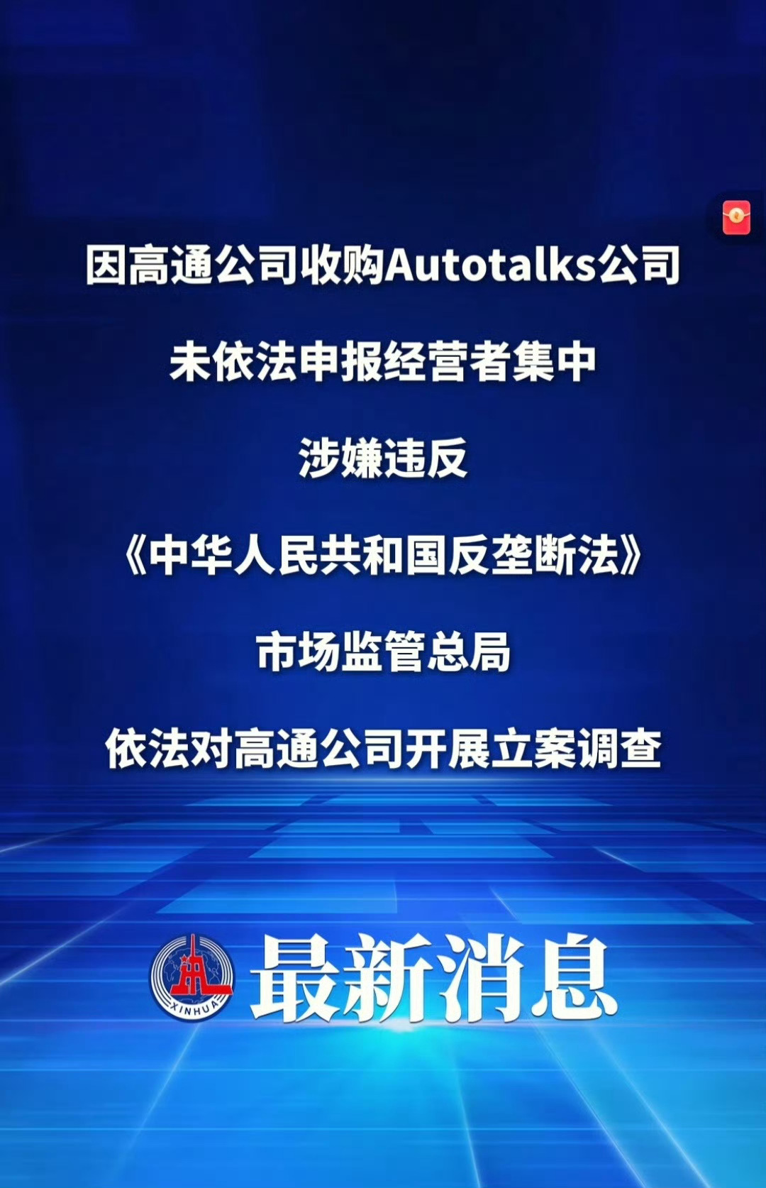 【中国对高通Autotalks交易展开反垄断调查】(路透社)——中国市场监管机构