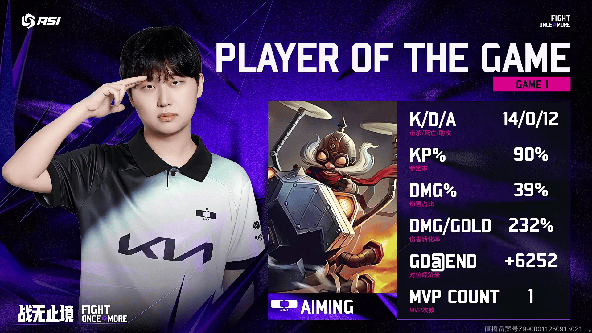 Aiming飞机砍下14/0/12的战绩,拿下DK对阵NS首局MVP