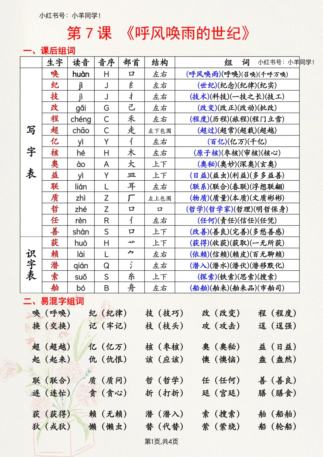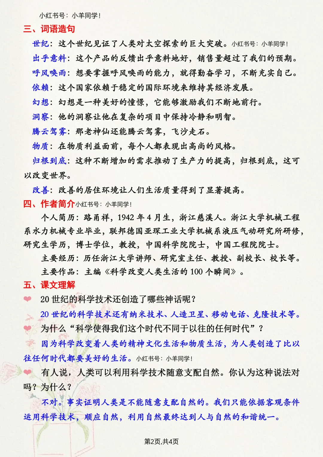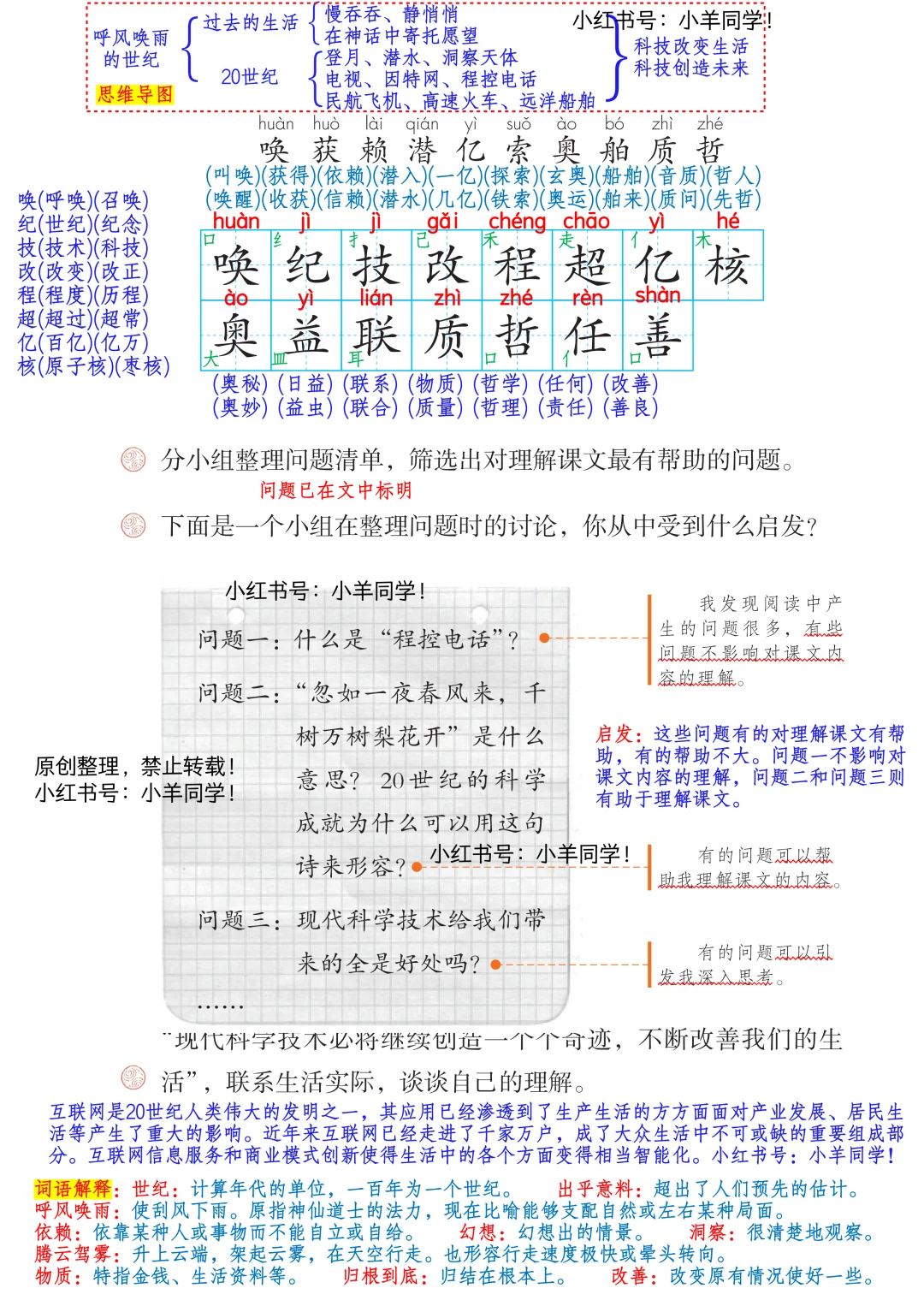 学习目标 1.认识“唤、获”等 10 个生字,会写“唤、纪”等 15 个字,会写“呼风唤雨、世纪”等词语 2.能给问题分类,筛选出对理解课文最有帮助的问题,能借助问题理解课文内 容。(重点) 3.能联系生活实际理解课文最后一句话的含义,辩证地看待现代科学技术。