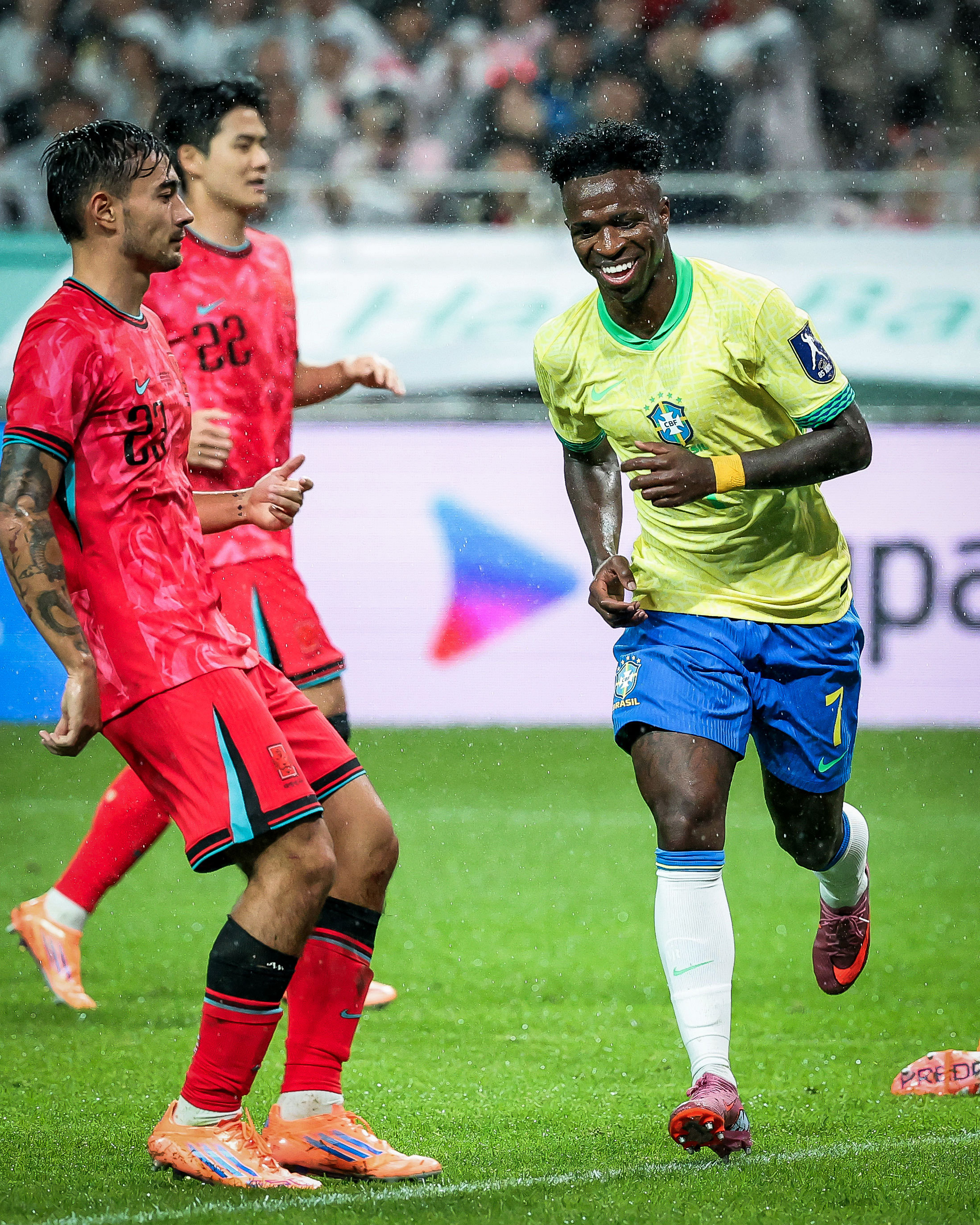 国际友谊赛,韩国坐镇主场0-5惨败巴西......罗德里戈、埃斯特旺上演梅开二度,维尼修斯传射建功。