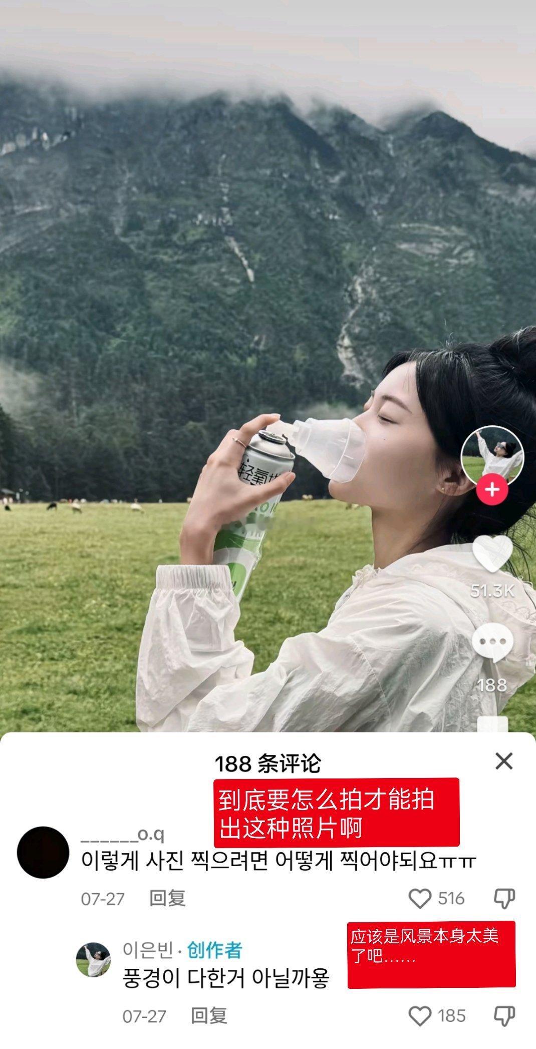 一个找了中国东北男朋友的韩国女孩,经常在外网发一些她跟男朋友旅行全中国的照片。因为拍的太好而在韩网小火,韩国网友说这些照片“哪怕在人生照片里也算是传奇级别”