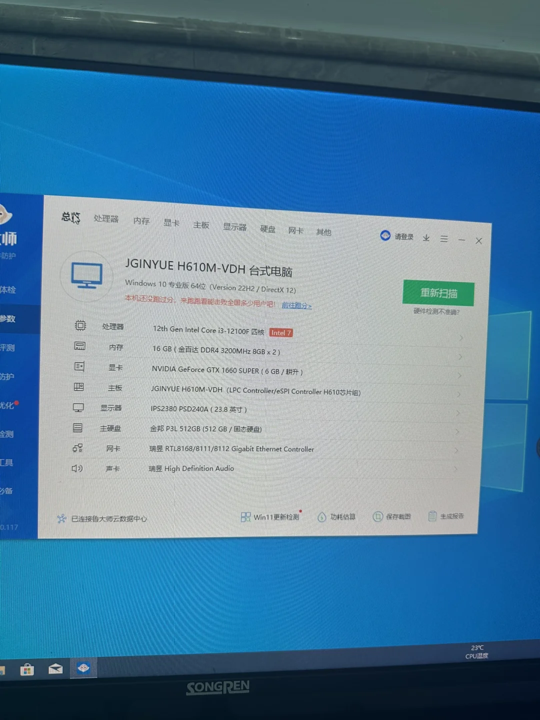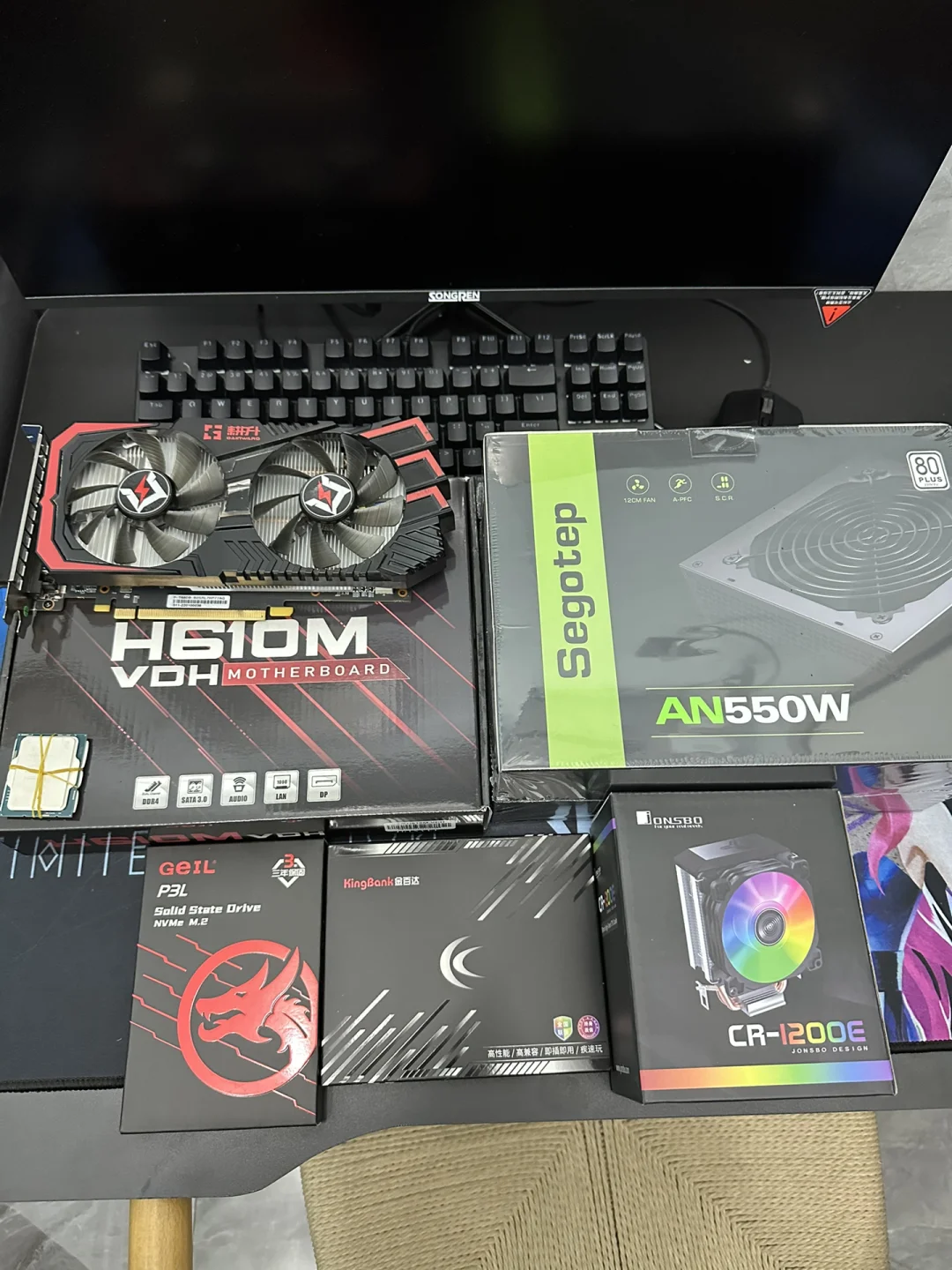 总结一下,玩游戏性能很强,1080p画质下游戏通吃,游戏没问题,办公当然也没问题。 cpu:i3 12100f 主板:精粤h610m 内存:金百达 8*2 16g 3200hz 硬盘:金邦512g m.2 显卡:耕升1660s 6g 二手的 (图上是22年生产的,建议购买的时候买个新一点的生产日期) 散热:乔斯伯1200 电源:鑫谷额定550w 机箱:天启➕1风扇 这些设备不在这个预算以内 仅供参考 显示器:松人 1k 24寸 144hz 耳机:西伯利亚v10 鼠标:罗技G102 键盘:风陵渡