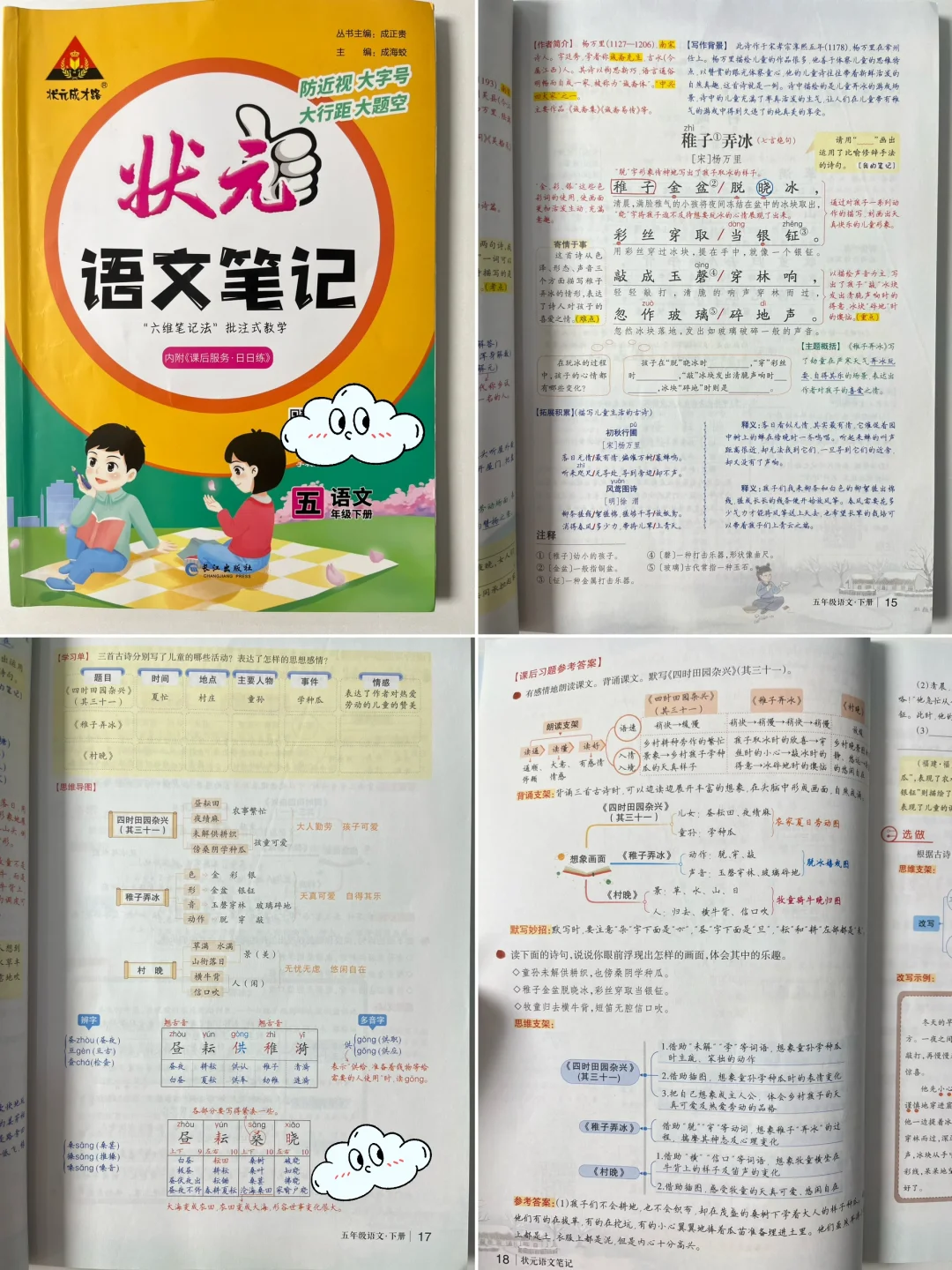 《状元语文笔记》A4纸(21*29cm),彩绘彩印。