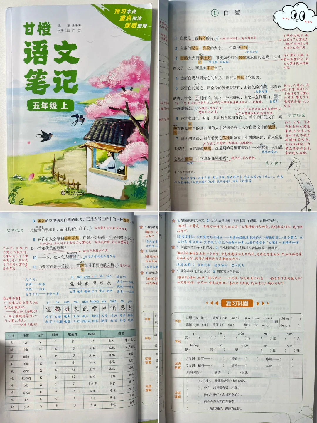 《甘橙语文笔记》A4纸(21*29cm),彩绘彩印。