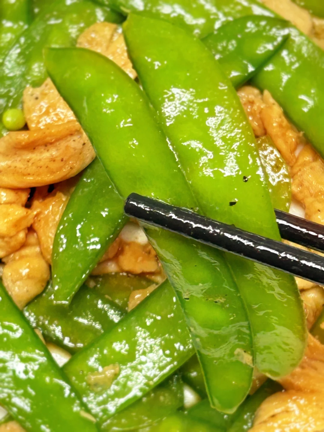 今天带的减脂餐,荷兰豆炒鸡胸肉~