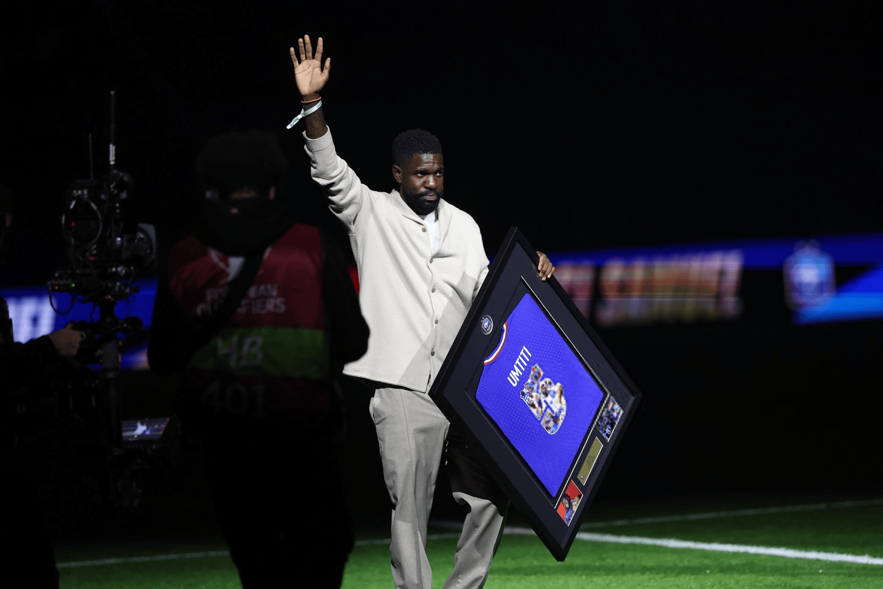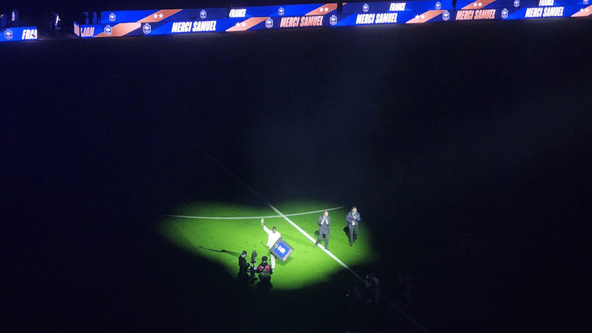 全场的灯光打向这位以职业生涯此后伤病缠身为代价帮助球队取得世界杯冠军的法国后卫,并且向他送上了热烈的掌声。
