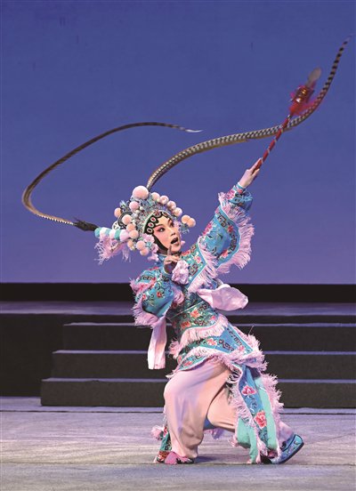 10月5日晚,福建京剧院主办的“海上生明月两岸共此时”戏曲名家名段演唱会在福建福州上演。图为台湾演员廖采宸表演昆曲《扈家庄》选段。