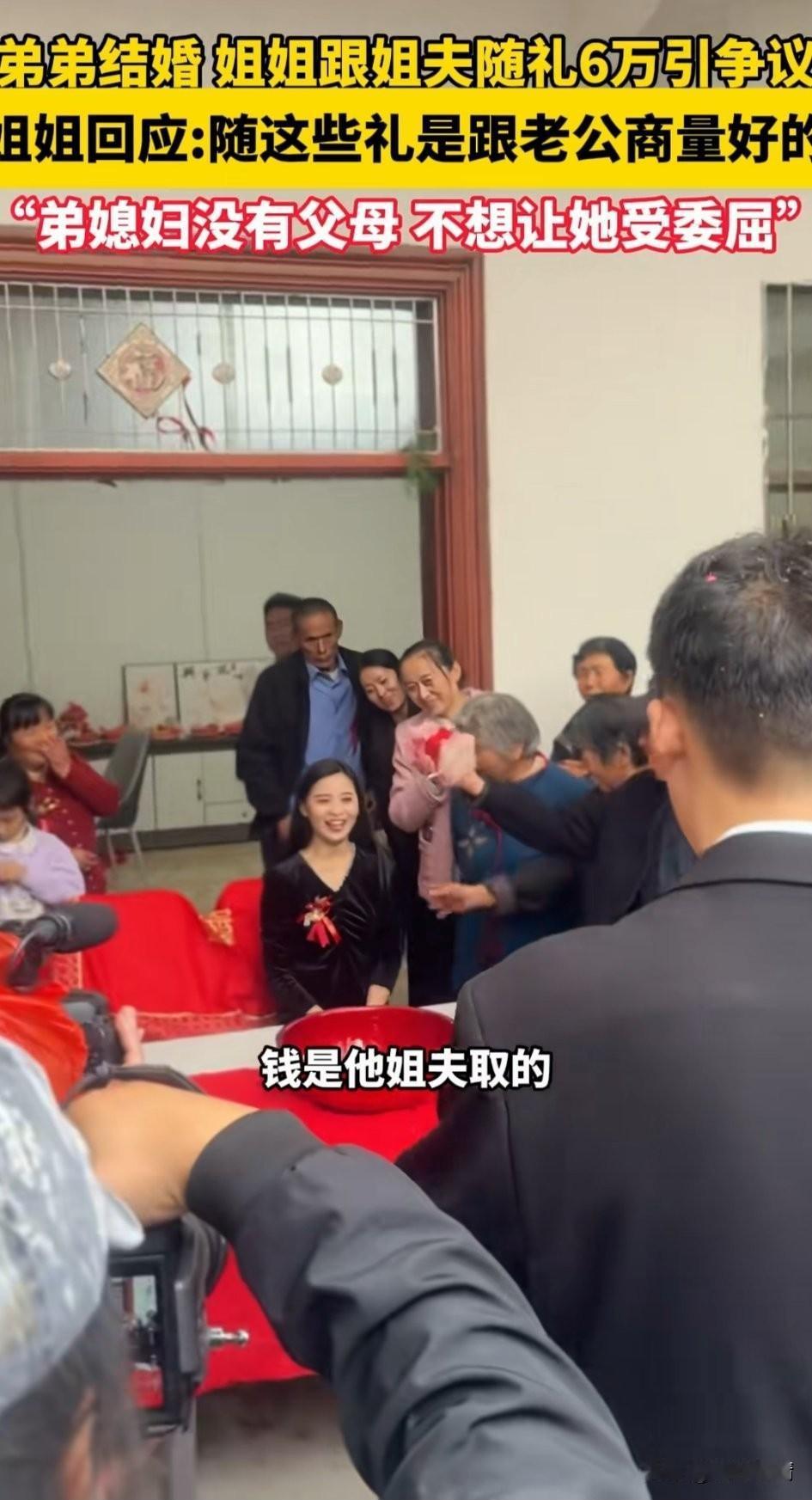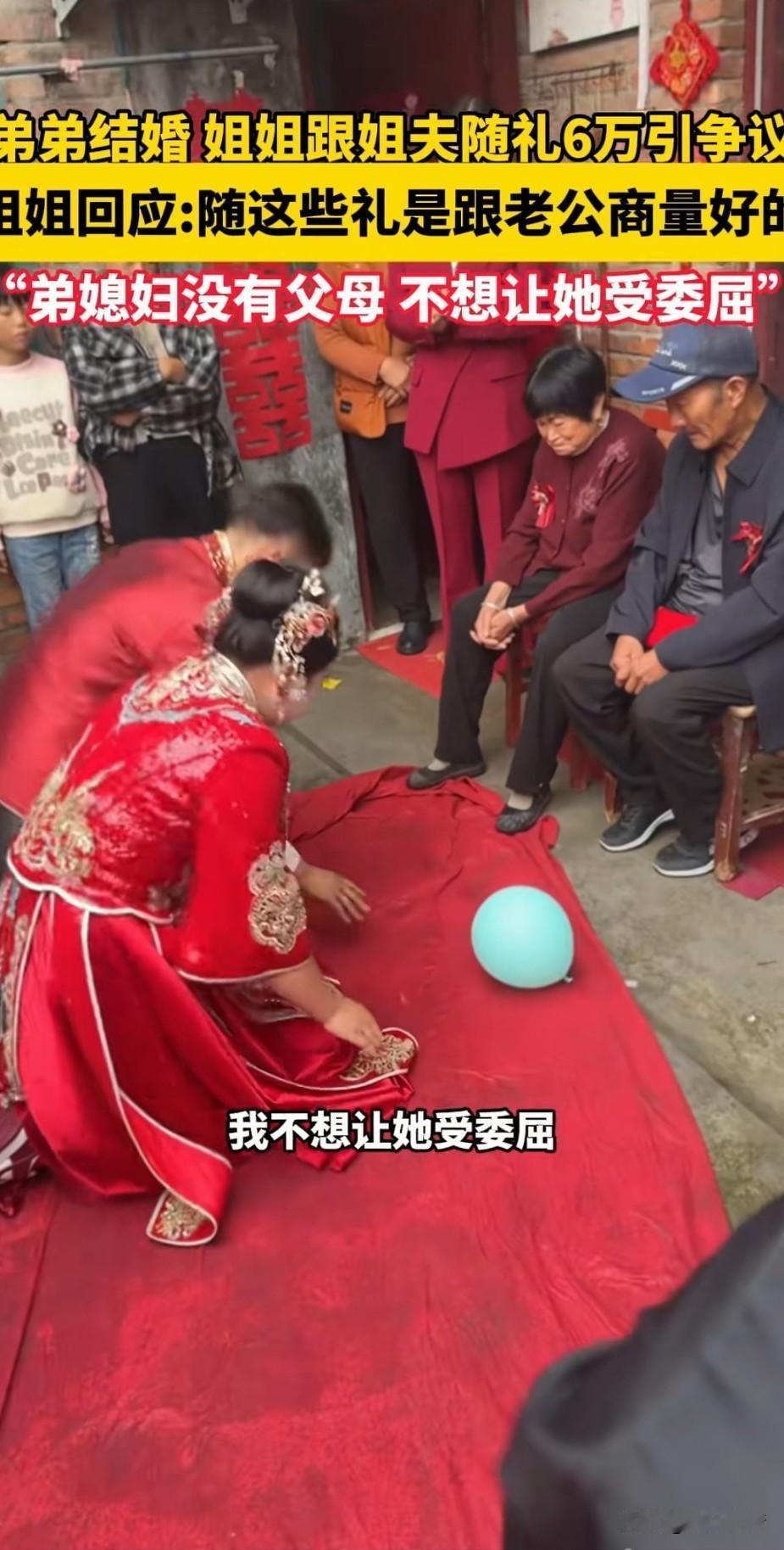 弟弟结婚姐姐随礼6万后续来了, 姐姐发声随礼6万是和她姐夫商量过的, 他姐夫是同意的,钱也是他姐夫取的, 这些钱不影响自己家庭生活, 她表示评论区说啥的都有, 有人说你老公开个凯美瑞给你弟随礼6万你都没想着给你老公换辆车, 她解释她家的车贷前两年才还完, 给弟弟随礼6万也是根据自己家的家庭情况的,弟媳妇没有爸爸妈妈, 她选择我弟弟,俺家没有爸爸, 来到这样的家庭,我不想让她受委屈, 我也想在我的能力范围之内帮助我妈我弟,可以看出这位姐姐非常非常懂事, 随礼这回事只要老公同意随多少无所谓,毕竟每个人家庭情况不一样, 大家议论比较多可能是不知道你家的情况,既然说开了那就没啥了, 毕竟长姐如母,只要儿媳好好对待你母亲那就好,毕竟婆媳矛盾是千年难题, 大家对于弟弟结婚姐姐随礼6万姐姐的发声怎么看? 彩礼这些事 如何看待随礼金额的差异 婚礼上弟弟 女方弟弟 婚礼随份子钱