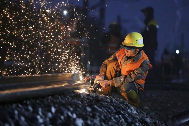 10月10日,铁路职工在陇海铁路甘肃省榆中县境内进行集中修施工作业。新华社发(王克贤摄)