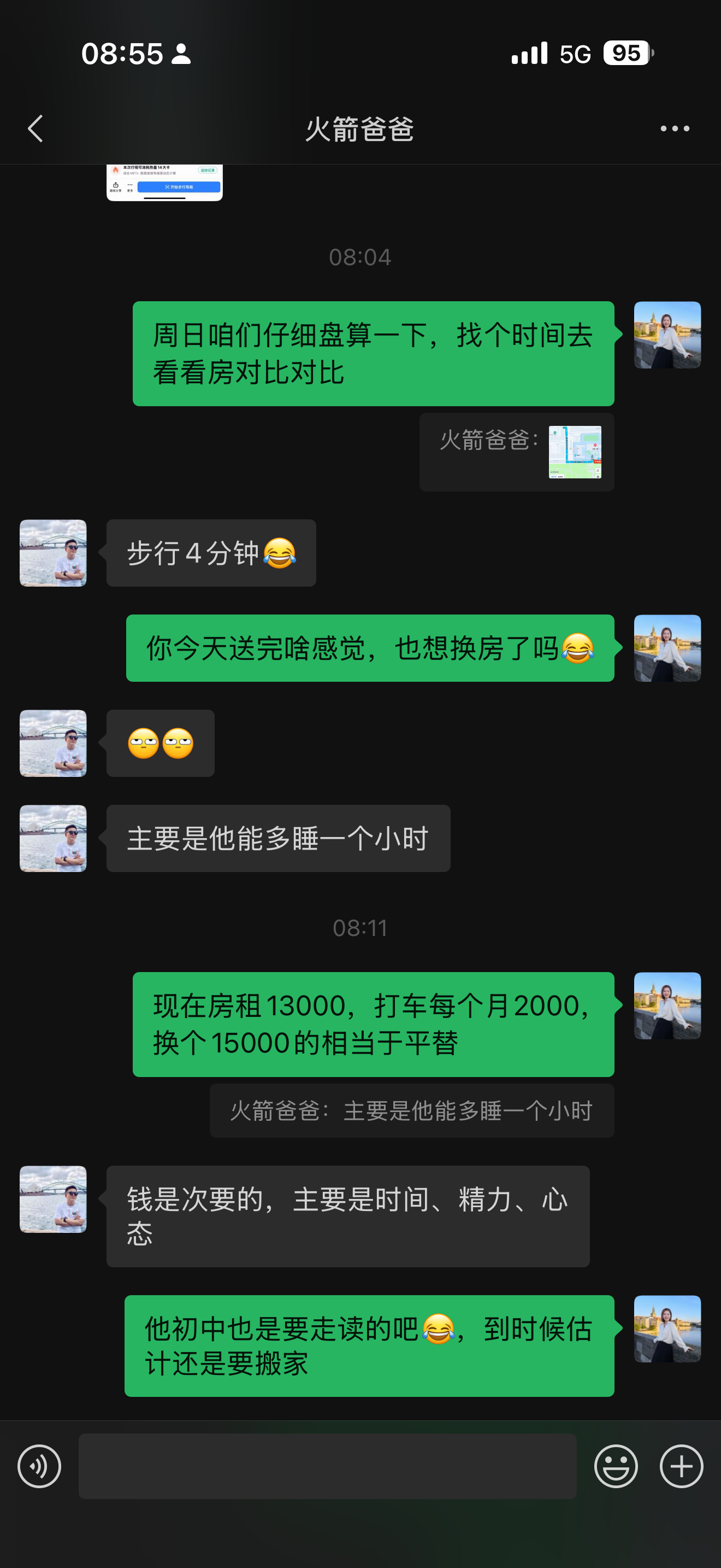 但现在已经入学了,再讨论在不在北京,搬不搬城里这些问题已经没什么意义了,按照我俩的行事风格,我们大概率还是会选择保时间,精力,心态。