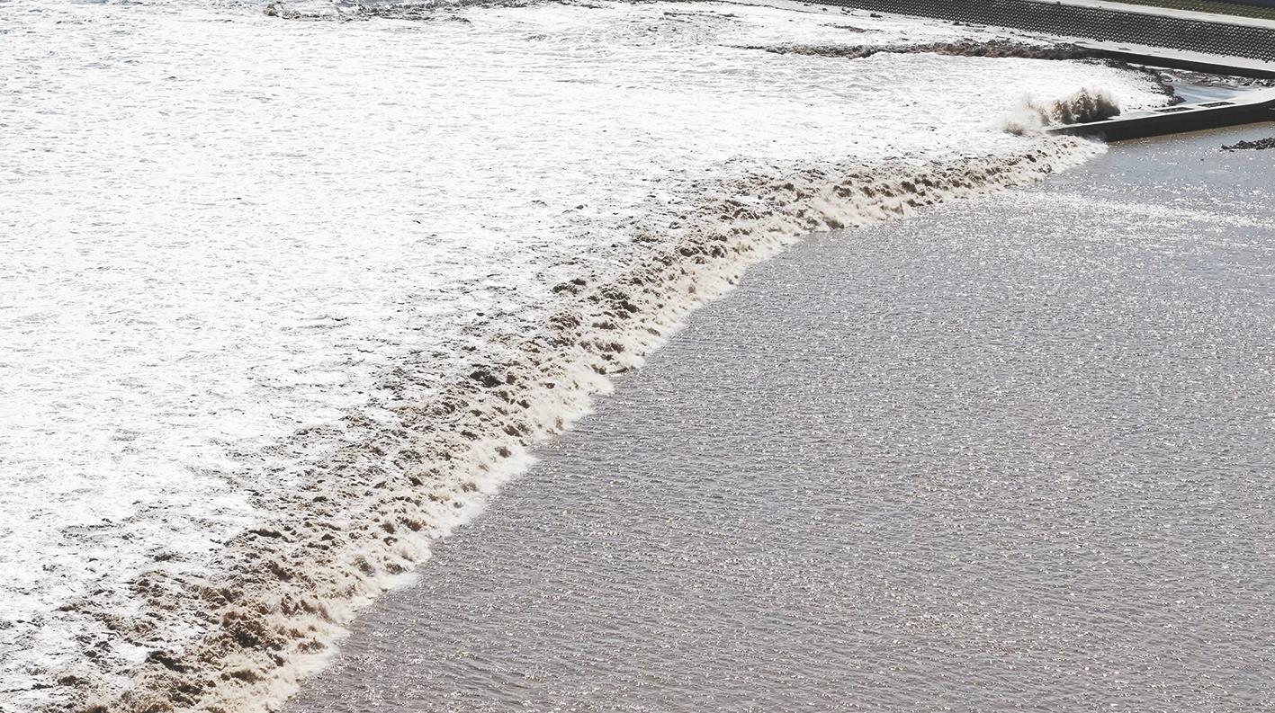当天11点50分左右,大潮奔涌而过,观潮人群发出阵阵惊叹,大家纷纷举起相机拍下这壮观一幕。市民何祥海告诉记者,他从袍江驱车两小时到达观潮点,已是连续10多年准时赴约的观潮铁粉。“每次都会带着露营椅静候一两个小时,当大潮奔涌而至的瞬间,心中顿感豁然开朗。”他说。“我们是从杭州过来的,特意带上3岁的小朋友一起来观潮,也算是开开眼界,潮水奔腾的磅礴气势,令人心潮澎湃。”凌先生说。