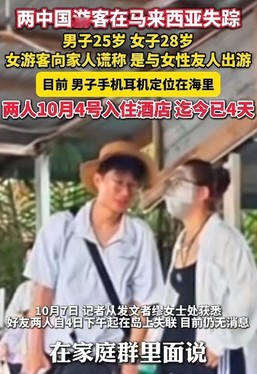 再美的风景也比不上平安回家!今年国庆假期,芜湖,一位28岁的中国女子向家人谎称和闺蜜去马来西亚旅游,实际上是和一位25岁的中国男子前往马来西亚游玩,结果谁也没想到会发生意外。 今年国庆假期,芜湖某大学28岁的女教师范女士,和比她小三岁的同事徐先生,两人早早就计划好了这趟马来西亚之旅,按照朋友们的说法,这俩人平时就是很合拍的旅行搭子,经常一起出去玩。 范女士知道父母肯定不会同意她跟一个男同事单独出国,索性就编了个理由,说是跟发小缪女士一起去的,选缪女士当挡箭牌也是有原因的,人家之前确实去过马来西亚,家里人不会怀疑。 10月4日凌晨,范女士还特意在家庭群里发了张沙滩照片,配文说和缪姐安顿好啦,照片里阳光明媚看着一切都很美好,谁能想到这竟然是她最后一次跟家人报平安。 当天下午,两人住进了丝绸美人鱼度假村,这个度假村位于美人鱼岛上,需要坐船才能到达,岛上风景确实不错,但当地人都知道,这片海域其实挺危险的,尤其是10月份正好赶上季风期,海浪特别大暗流也多。 监控录像显示,下午4点半左右两人一起走向海滩,范女士穿着泳衣,于先生套了件衬衫,半小时后有游客看到他们在浅水区,这时于先生已经换上了黑色潜水服,手里还拿着呼吸面罩。 最让人后怕的是酒店后来确认,这两人根本没有报名参加任何正规的浮潜项目,既没有领取救生设备,也没有签署安全告知书,就这么自己下海了。 那天的天气其实很糟糕,下午还是阴天一个小时后就开始下雨,第二天早上更是暴雨如注,在这种天气条件下私自下海,危险程度可想而知。 10月5日早上本该退房离岛的两人没有出现,清洁人员推开房门,发现行李箱还整整齐齐地立在墙角,防晒霜滚落在拖鞋旁边,床铺平整得像是根本没人睡过,很明显他们前一天晚上就没回过房间。 离岛的船等了他们40分钟,按理说这种情况酒店应该立即派人去找,但工作人员只是轻描淡写地告诉船长可能睡过头了,就这样最宝贵的黄金救援时间白白浪费了。 国内这边于先生的朋友张先生发现联系不上他,急得找人撬开了他的宿舍,宿舍里的平板电脑成了关键线索,手机的最后定位显示在10月5日的深海中,更诡异的是他的蓝牙耳机一只在市区,另一只的信号永远停在了海上。 消息传开后两个家庭都崩溃了,范女士的母亲哭着打电话给缪女士,这才知道女儿撒了谎,范女士的父亲和姐姐立即赶往马来西亚,但因为暴雨连续两天都无法登岛,于先生的家人连护照都没有,只能在国内焦急地办理加急手续。 中国驻哥打基纳巴卢总领事馆迅速介入,总领事紧急会见当地警方,要求加大搜救力度,马来西亚方面派出了55人的搜救队,动用无人机、水警船和潜水员进行搜索,但茫茫大海要找到两个人谈何容易。 有去过美人鱼岛的网友透露,这个地方看着美,实际上暗藏杀机,近年来已经发生过多起中国游客在此遇难的事故,当地的海流凶险尤其是季风期,连经验丰富的潜水员都要格外小心。 截至10月9日,搜救工作仍在继续,但希望已经越来越渺茫,两个年轻人就这样消失在了美人鱼岛的深海里,留下的只有家人的眼泪和无尽的遗憾。 这起悲剧给所有人敲响了警钟,出国旅游尤其是参加水上活动,一定要选择正规项目,听从专业人员指导,再美的风景也比不上平安回家。 麻烦看官老爷们右上角点击一下“关注”,既方便您进行讨论和分享,又能给您带来不一样的参与感,感谢您的支持!