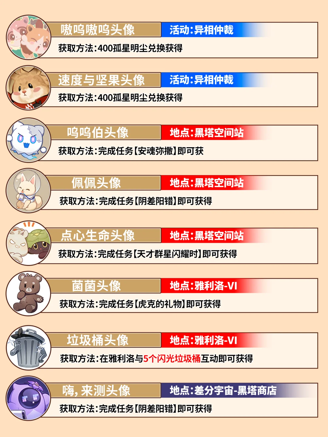 星铁所有隐藏头像全获取攻略,查缺补漏❗️