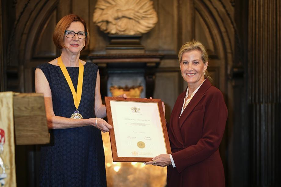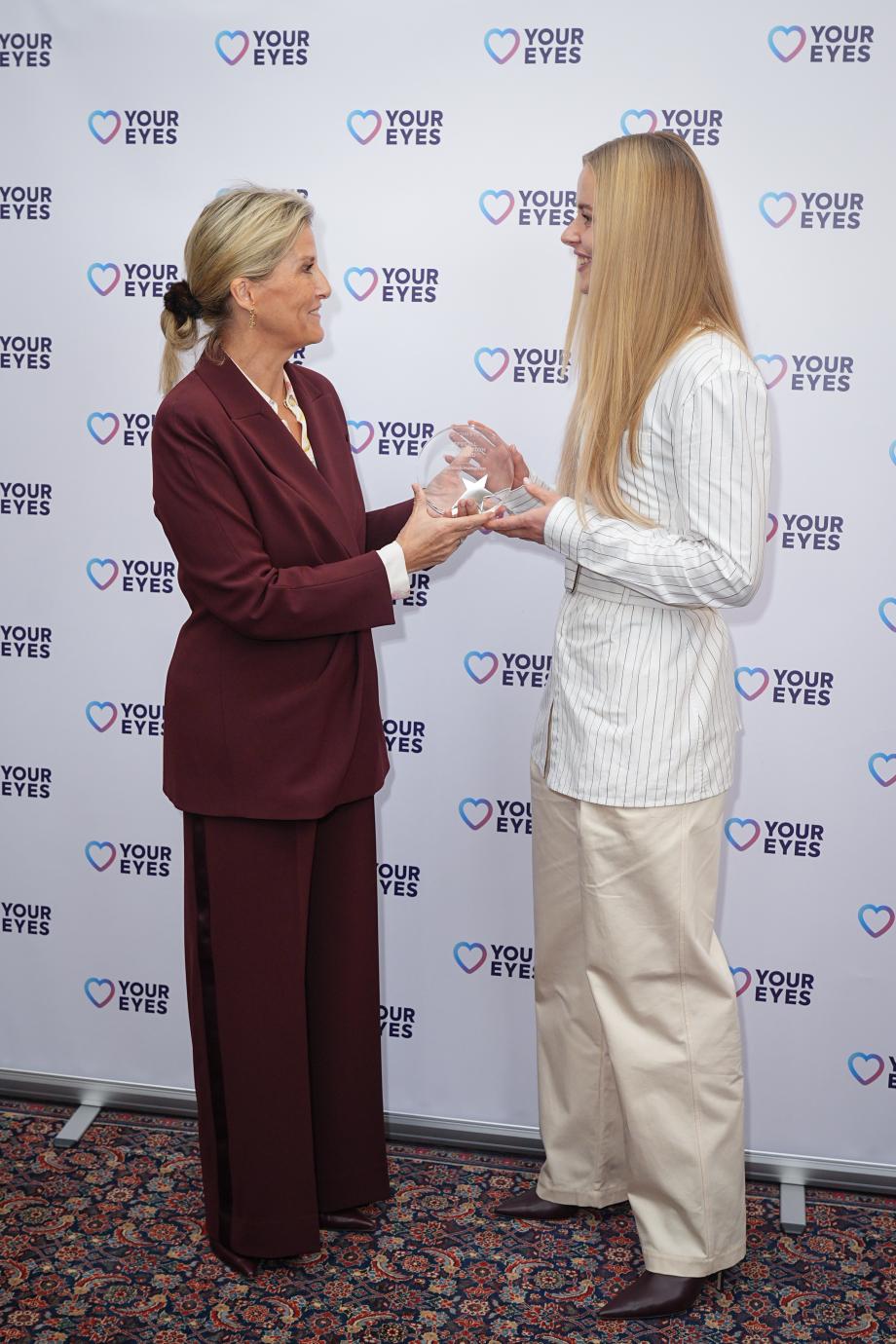 2025年10月10日,爱丁堡公爵夫人参加了2025年世界视觉健康日的庆祝活动,与眼科专业人士和患者们共同庆祝。 爱丁堡公爵夫人热衷于消除可避免的失明。 在伦敦的一个招待会上,爱丁堡公爵夫人会见了眼科专业人员、视觉和眼部健康研究人员以及一组患者及其家属。 在活动期间,皇家眼科学会授予王妃荣誉会员资格。这一荣誉由吉莲·鲁德科克博士(皇家眼科学会会员)授予爱丁堡公爵夫人,以表彰她在英国和全球各地推动眼部健康项目的工作。 这个特别仪式在伦敦市的药剂师大厦举行,这是一座历史建筑,也是眼镜制造行会的所在地,该行会是视光学专业机构的前身之一,拥有悠久的传统。 后来,作为国际防盲协会(IAPB)的全球大使,公爵夫人向英格兰狮后队和切尔西足球俱乐部的守门员汉娜·汉普顿颁发了一个特别奖。 IAPB“爱眼特别贡献奖”认可汉娜为提高意识并以她的眼健康故事激励他人所做出的努力。 出生时就患有斜视,这是一种严重的眼睛状况,使她几乎没有深度感知,汉娜在三岁前接受了多次手术以改善她的视力。尽管一些眼睛健康专家建议她避免运动,她的决心确保了她可以追求自己的足球热情。