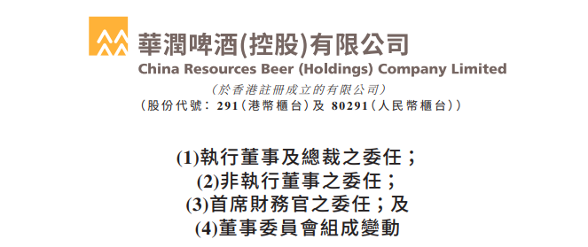 华润啤酒(00291.HK)董事会宣布,自2025年10月10日起,