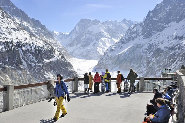 游客在观景台观赏法国冰海冰川