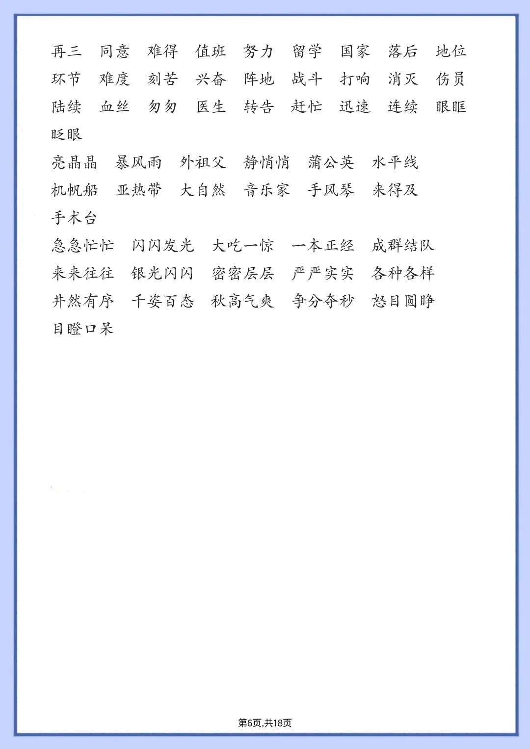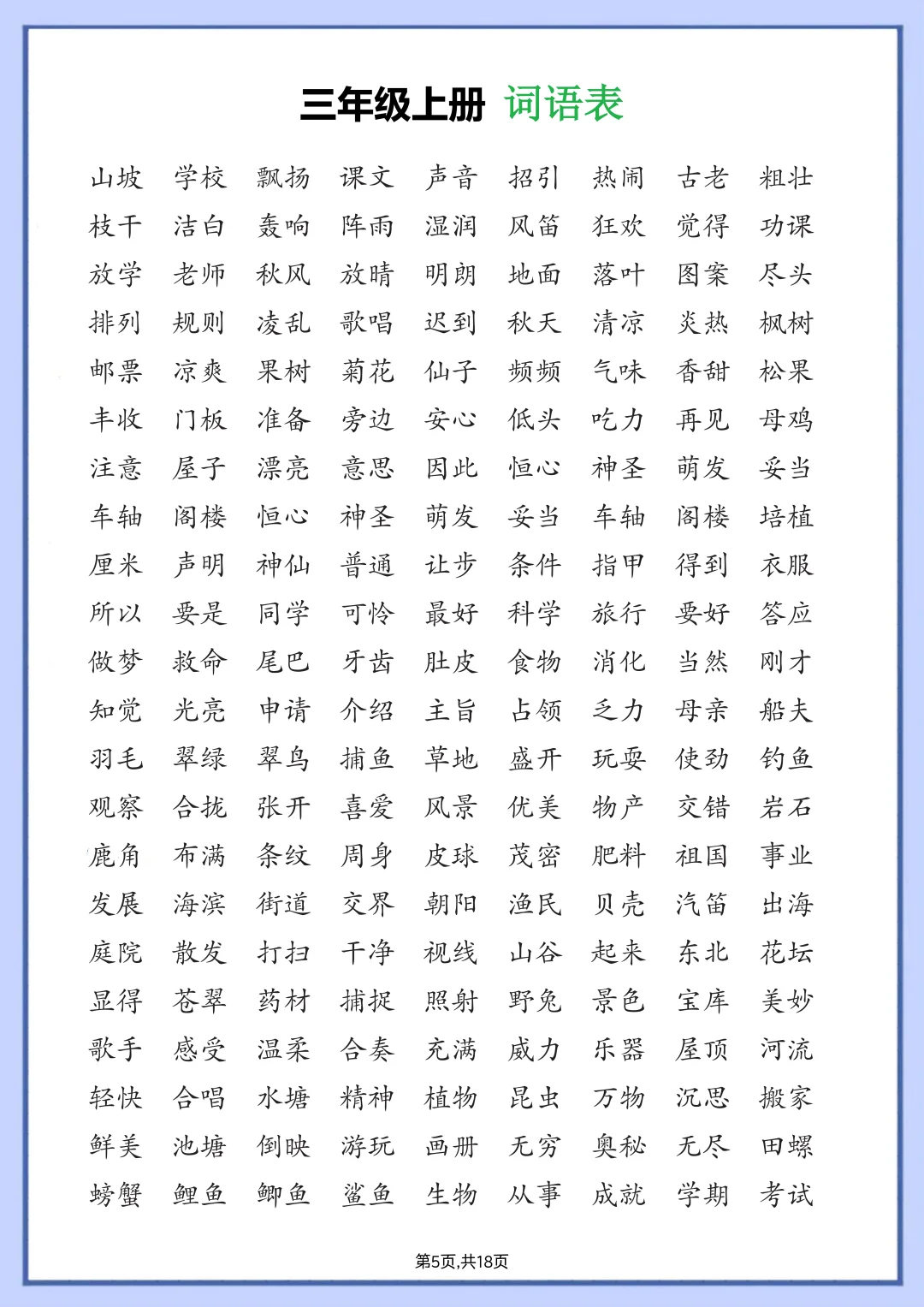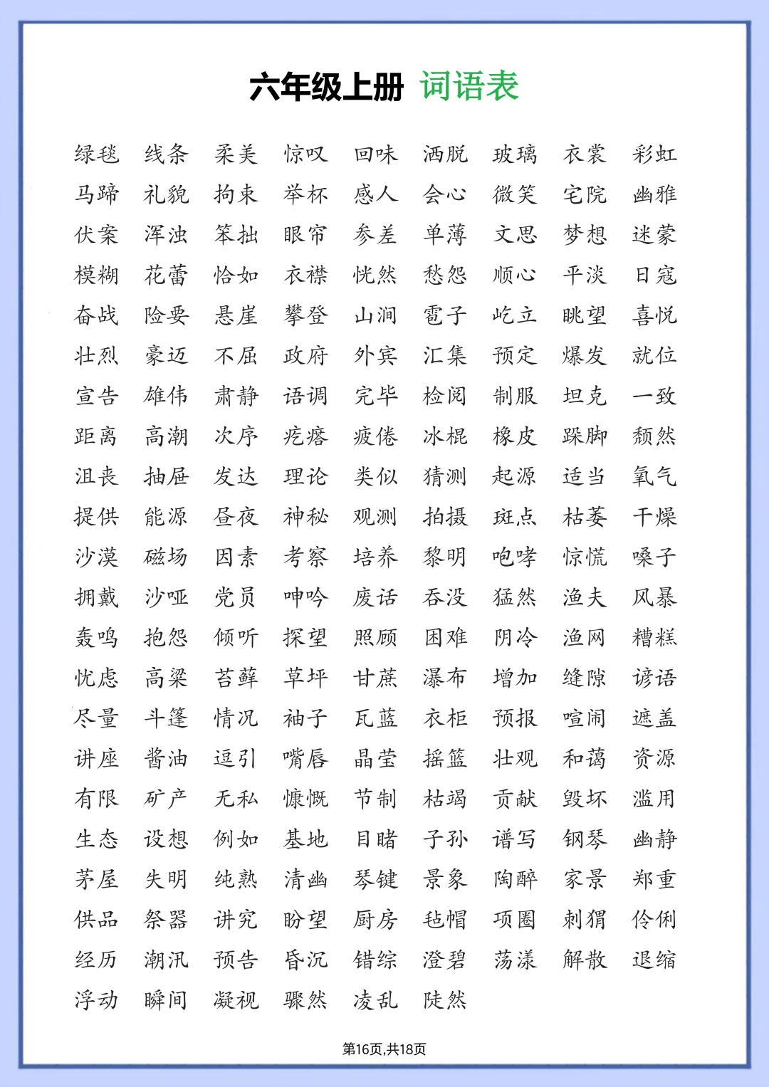 注意哦~是2-6年级上下册的词语表汇总, 并没有一年级的,因为一年级教材中没有词语表。