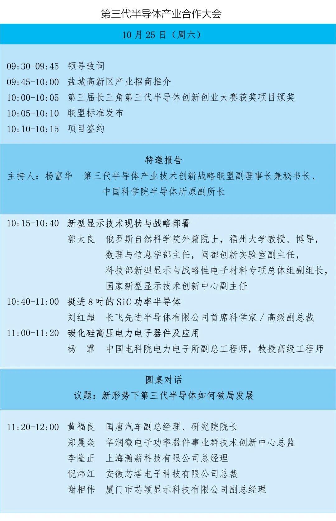 想要了解更多会议信息,诚邀大家参加10月24-25日在盐城举办的“第三代半导体产业合作大会”,本届盛会受到了产业链企业高度关注和支持,还有长飞先进、京东方、瀚薪科技、芯塔电子、汉印机电、芯颖显示科技等企业将带来重磅主题演讲,报名请扫描海报二维码!