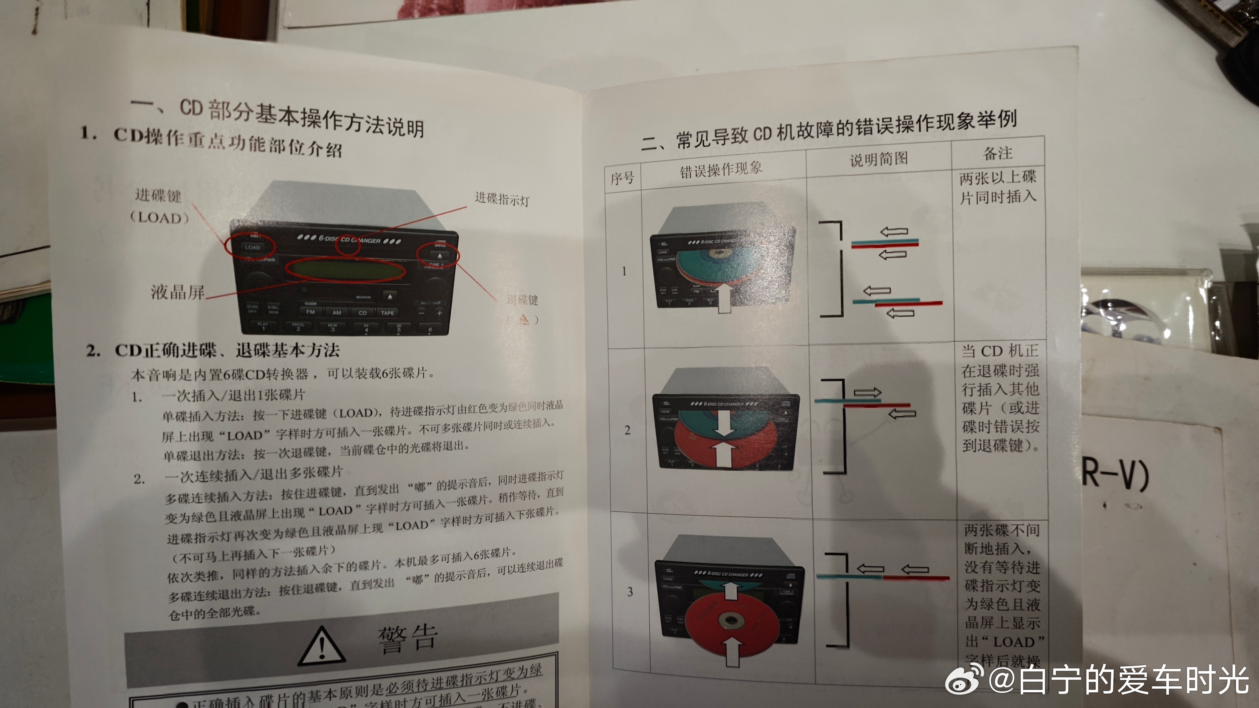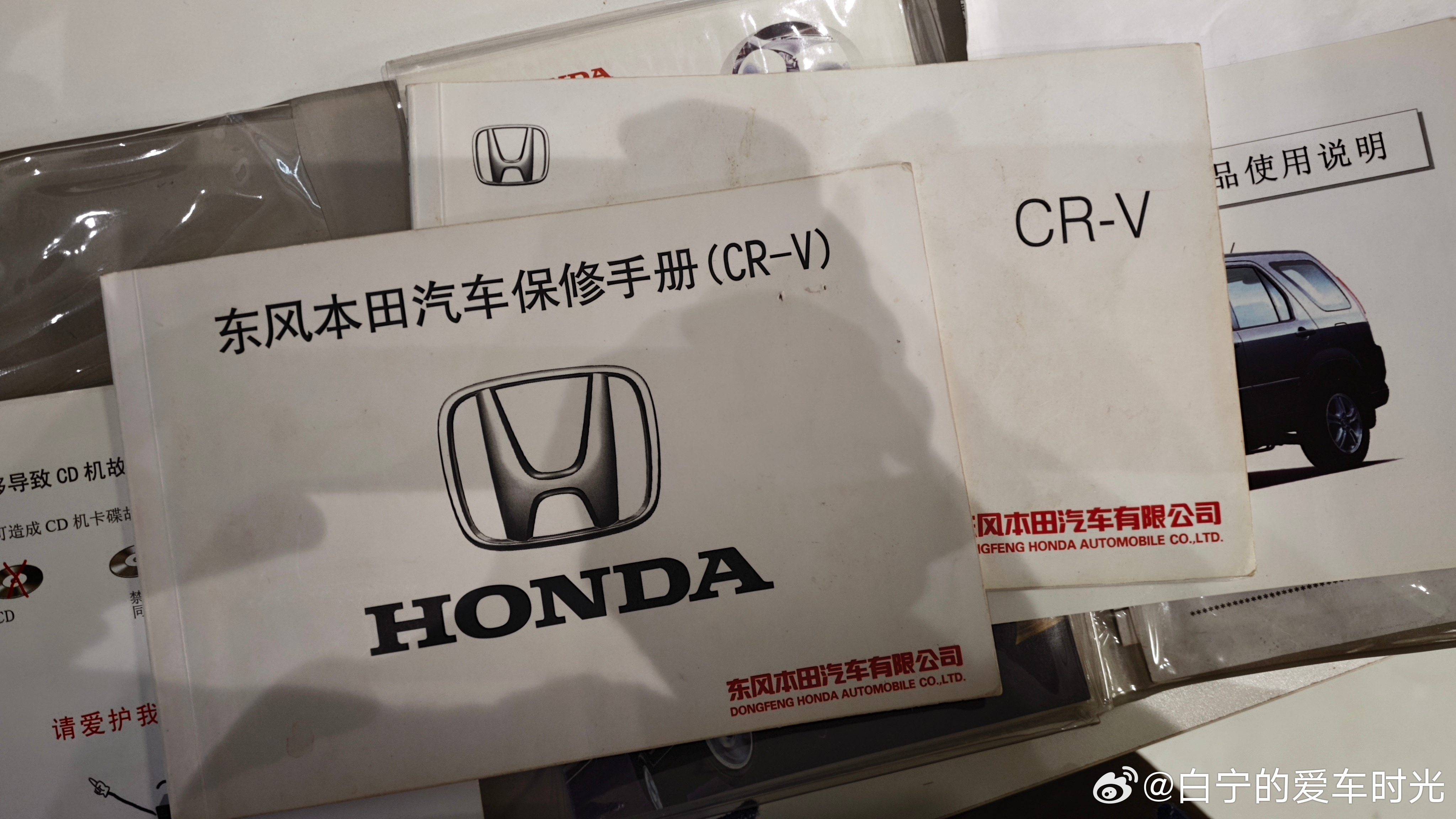 好朋友的本田CRV报废领补贴了,把说明书送给我了。当年的说明书好丰富,气囊都有单独的说明书,还有光盘,回头我把视频读出来发在这里,咱们也重温下20年前的汽车说明视频。东风本田