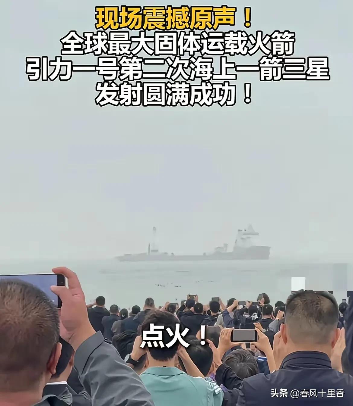 2025年10月11日上午,在烟台海阳附近海域,“引力一号(遥二)·海澜之家号”运载火箭成功发射,把3颗卫星送上太空。这可是全球最大固体运载火箭“引力一号”的第二次苍穹远征,也是东方航天港保障的第20次海上发射。 “引力一号”由东方空间(山东)科技有限公司自主研制,2024年1月首飞就惊艳世界,创下多项纪录。它近地轨道运载能力达6.5吨,500公里太阳同步轨道运载能力4.2吨,还能支持百公斤级卫星“一箭30星”发射。烟台海事部门也全力保障,让这次发射圆满成功,大国重器真牛!