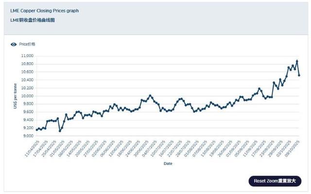 汇生国际资本总裁黄立冲在接受采访时分析指出,这波股价上涨主要是由铜价的强势行情所推动。洛阳钼业股价的波动与伦敦金属交易所(LME)铜价走势高度同步,尤其是在9月29日至10月9日间,股价累计上涨超过24%。黄立冲指出,10月8日铜价一度突破10815美元/吨,创下2024年5月以来的新高,反映出全球大宗商品回暖的市场情绪,投资者普遍看好铜需求,尤其是在新能源领域的需求激增。