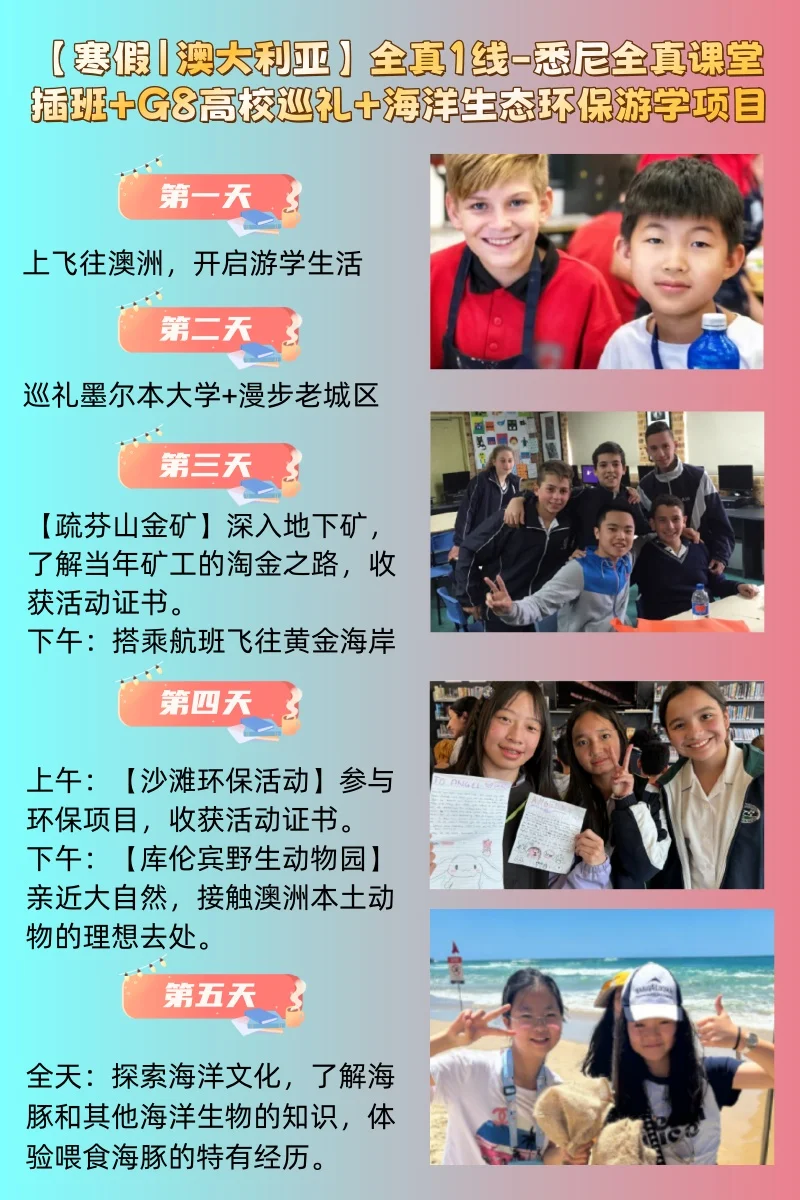 [打卡R]沙滩环保活动:学员们将参加[黄色心形R]黄金海岸的“保护沙滩”活动。学习海洋生态知识,提升其环保意识和责任感收获活动证书。