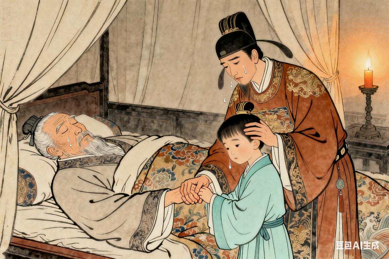 贞观九年五月,他病得很重。李世民带着孩子们来看他,他拉着李世民的手,手很凉,声音也很轻:“二郎,爹这辈子,没什么大本事,就是把大唐的根基给你打下来了。你要好好管着,别让百姓受苦,别让李家的祖宗失望,也别忘了,兄弟情分最珍贵,别再走爹的老路”。李世民点了点头,眼泪掉了下来,滴在他的手上。他又摸了摸孙子李治的头,说“要听你爹的话,以后做个好皇帝,心里装着百姓”。说完,他闭上眼睛,手里还攥着那卷兵书的一角。