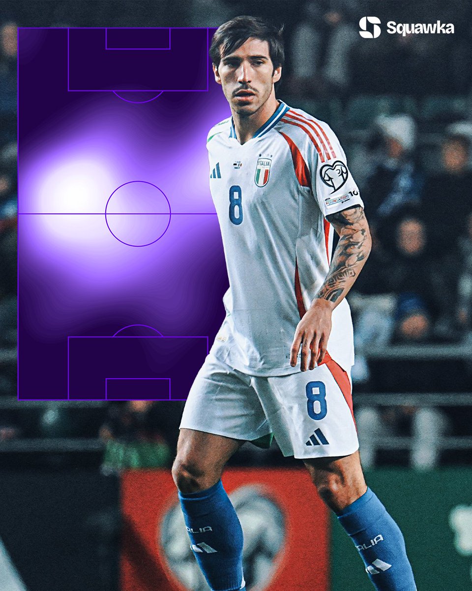 顶级中场表现,托纳利对爱沙尼亚107次触球并造5次机会