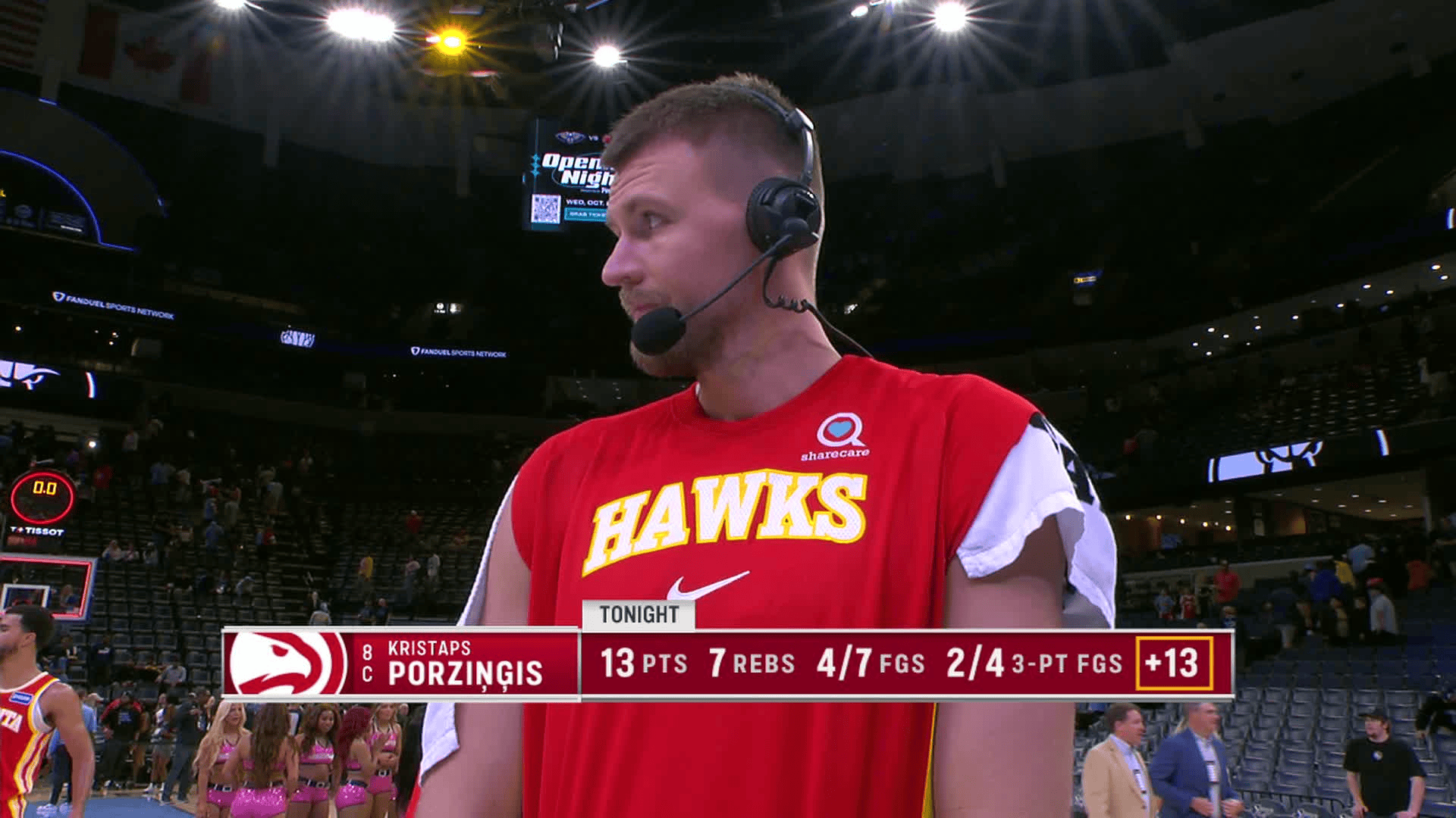 老鹰球员波尔津吉斯出战23分钟,投篮7中4、三分4中2得到13分7篮板2助攻1盖帽。