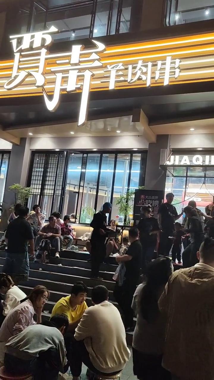 徐州烧烤爆火。 看没有,这叫贾清羊肉串,九六年烧烤。你看这人,全是等羊肉串的。我一开始以为干什么的,你看这边,我刚问了一个全是等羊肉串多少人。现在晚上快十点了,这叫贾清羊肉串店,还这么多人。刚才我问了一下,等号还得等一百七十四个,营业到十二点半。从白天到晚上就都这样,你说这得多少人?