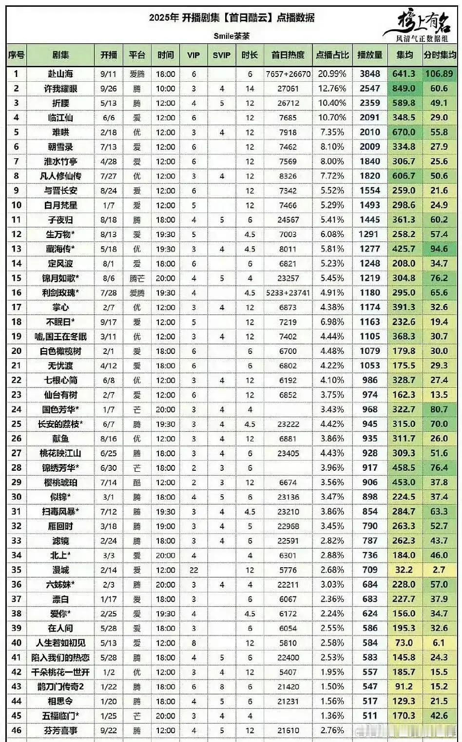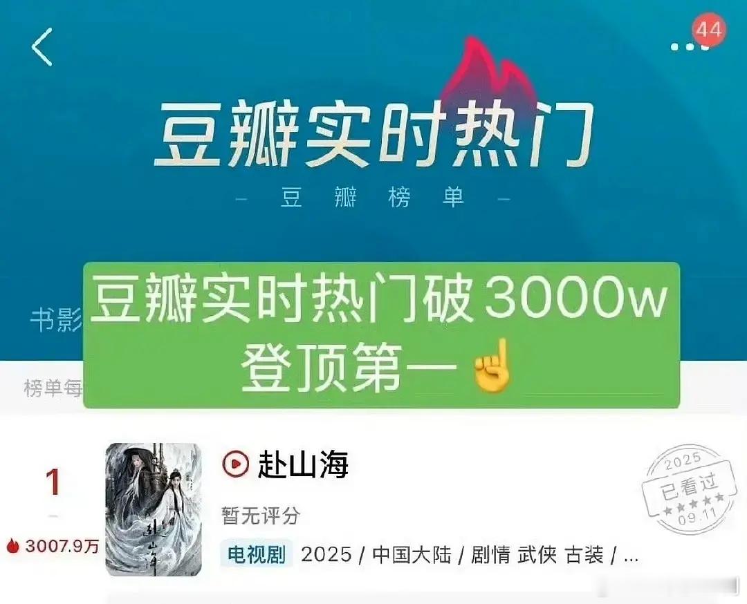 《赴山海》各项TOP1实绩,成毅强大的号召力和商业价值,真正现象级,注定会是一部很多年还会被反复提及的剧,毕竟它都这么坎坷了,平凡不会是它的命运。赴山海