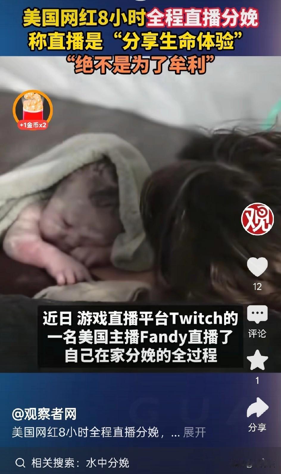 天下之大无奇不有,居然有人全程直播生育全过程,当然不可能发生在我们这里,否则早就被封禁了,这个事发生在美国,美国网红全程 8 小时直播自己生育的全过程,让大家清清楚楚看到人类来到世界的全过程以及母亲为了生育孩子所经历的磨难,体会为母则刚的道理 每个人都不是随随便便来到这个世上的都是母亲经历了千辛万苦而来的,她只是让大家了解婴儿怎样来到世上而已! 母亲真的很伟大!