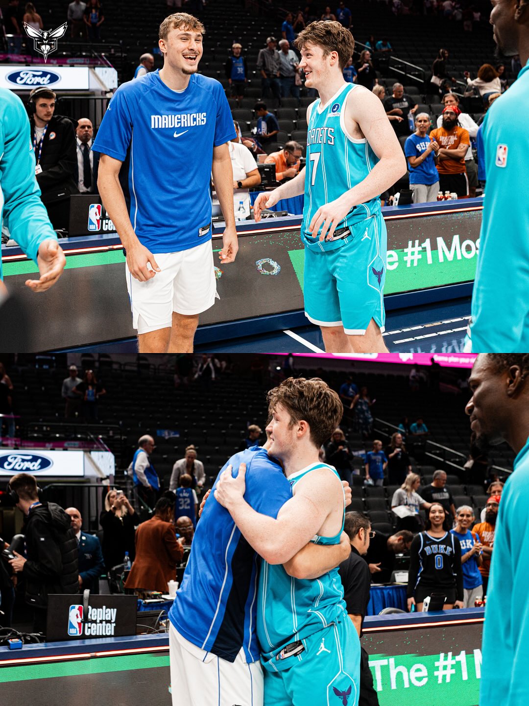 虎扑10月12日讯今日,黄蜂官方在社媒发布了一组库珀-弗拉格与康-克尼普尔的赛后照片。