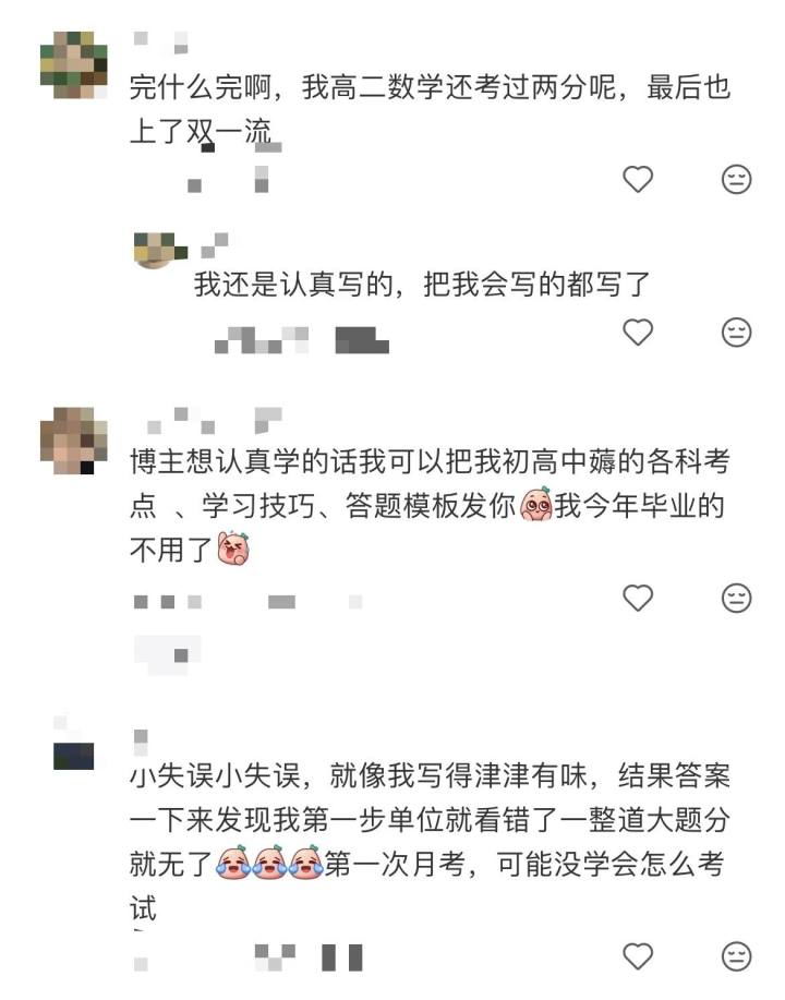 有位高一学生在网上发帖,说数学没考及格,是不是高中要完了。不少网友留言鼓励他,有人说“我高二数学还考过两分呢,最后也上了双一流。”