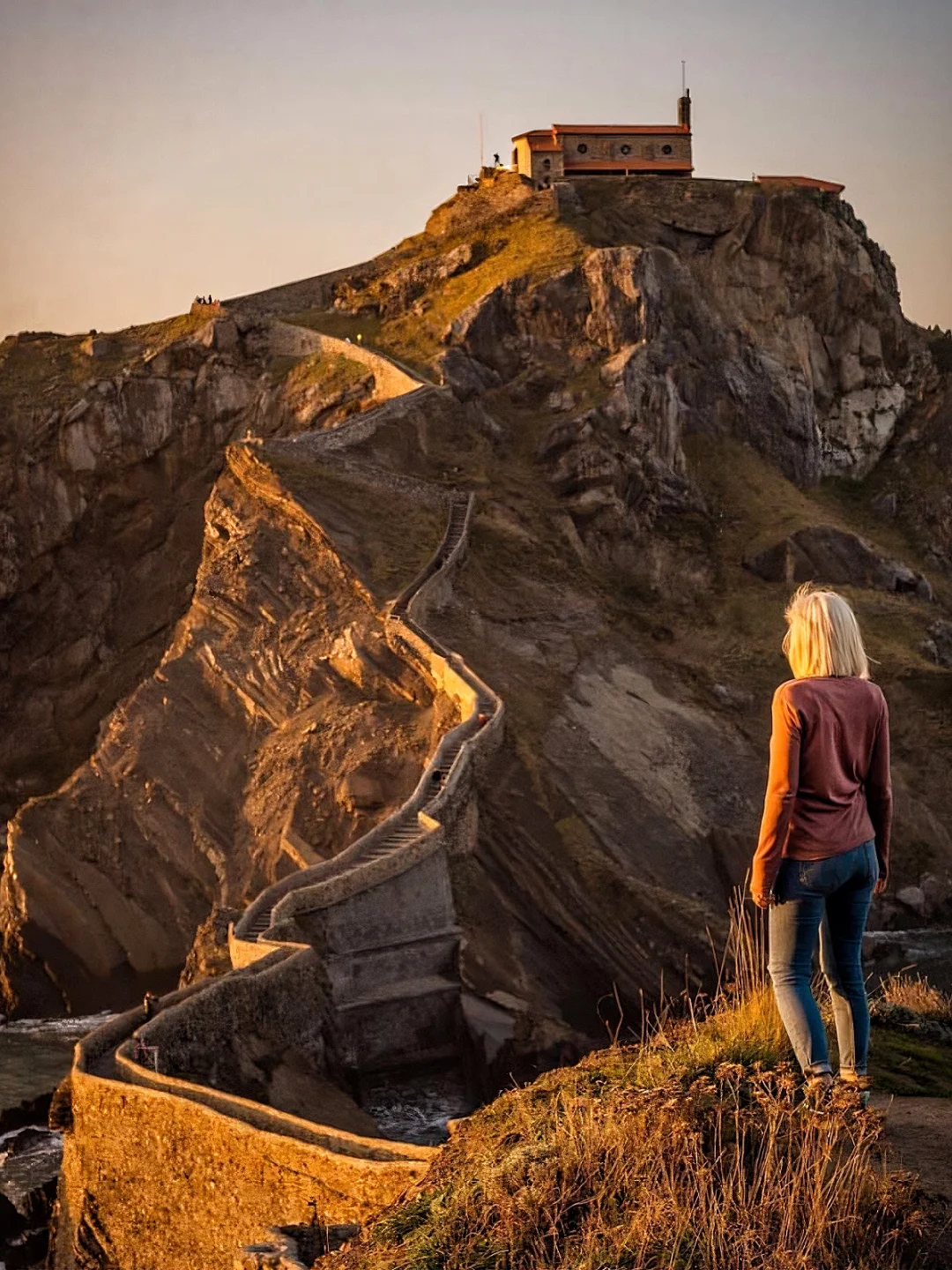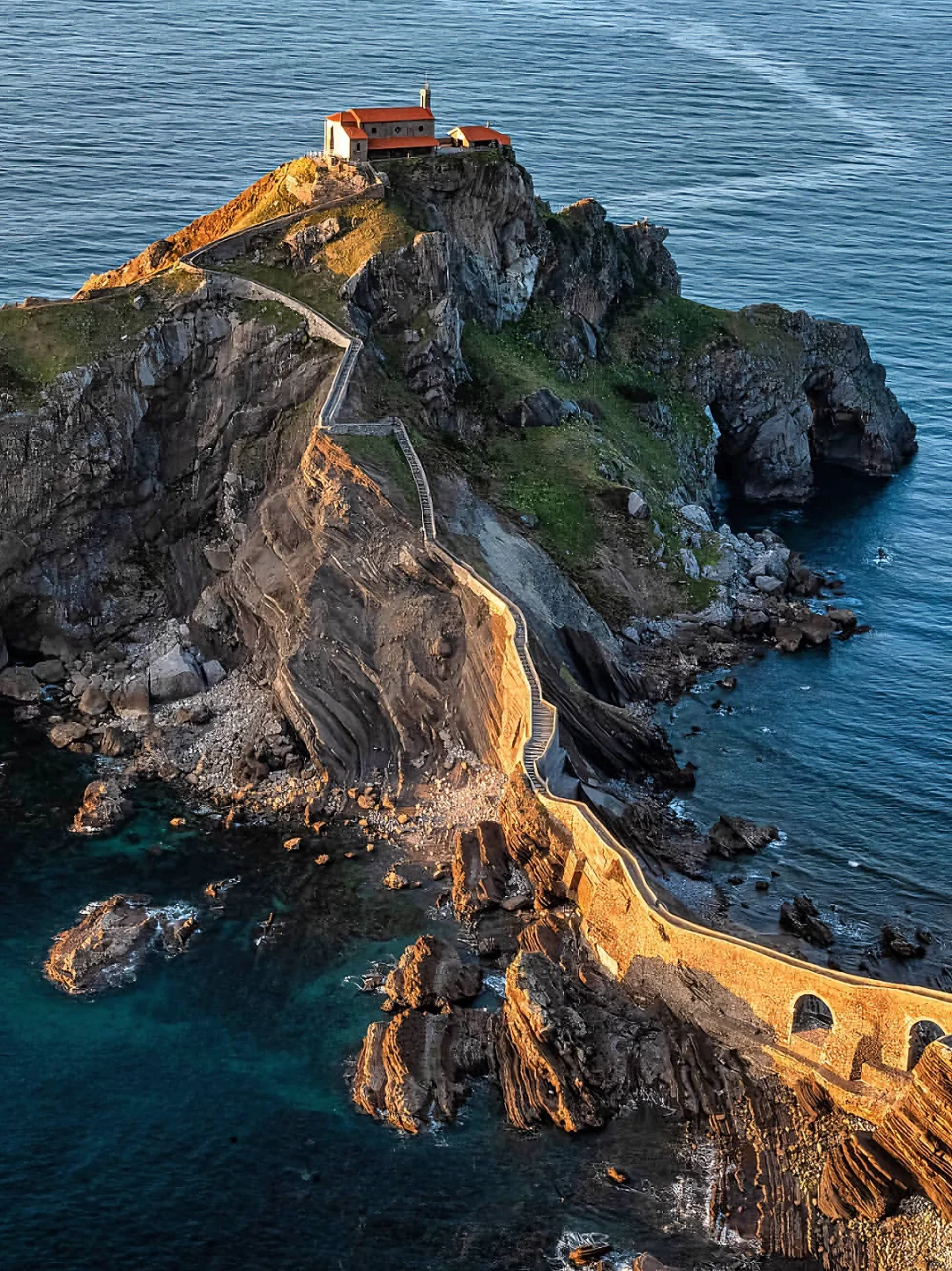 San Juan de Gaztelugatxe位于比斯开湾沿岸,距离毕尔巴鄂以东 35 公里,如果来游览巴斯克地区,这里绝对是“必游之地”。许多人会认出这里是《权力的游戏》第 7 季“龙石岛”中的岛屿要塞,然而,它的真名可以从巴斯克语翻译为“城堡岩石”